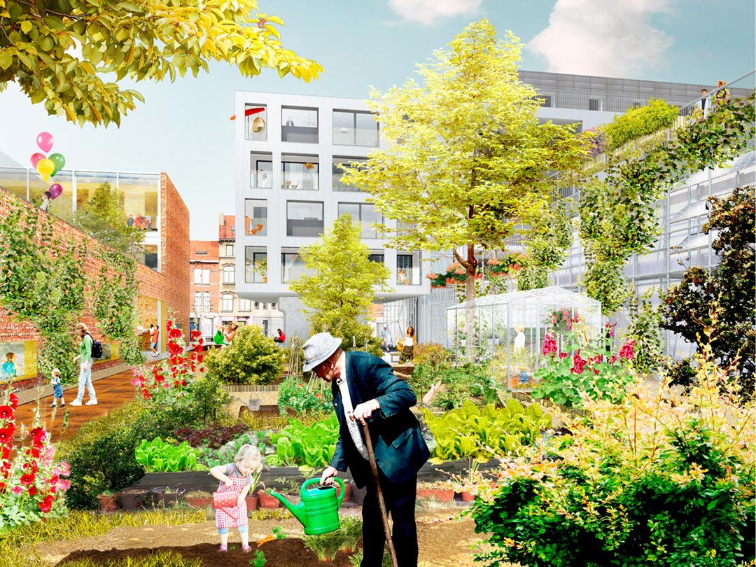2DVW (RDVA+JDWA) in collaboration with Duotuin wins competition with “Jardin des Moineaux” [Sparrow Garden] in Brussels: 6 social apartments+community garden+extension school.