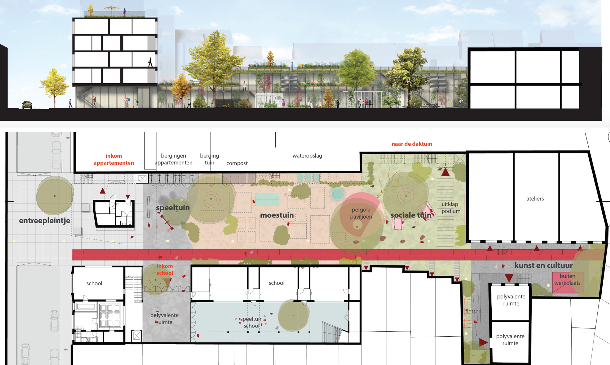 BRUZZ beschrijft hoe de school die is ontworpen als onderdeel van ons project Jardin des Moineaux in Elsene, zal bijdragen aan het oplossen van het gebrek aan Nederlandse taalscholen in de omgeving.