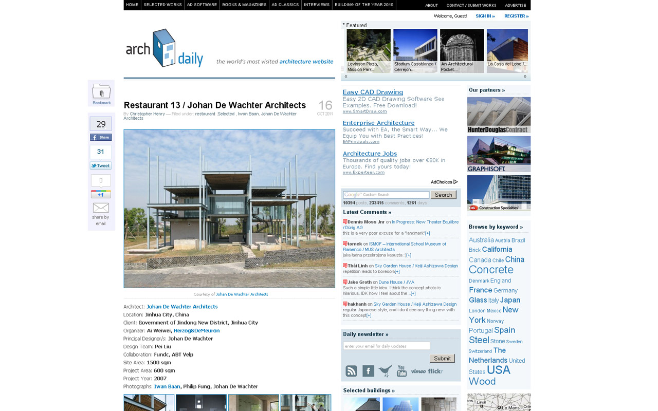 Just a month online with our new site, JDWA project Restaurant 13 is featured on ArchDaily.com – “the world’s most visited architecture website”