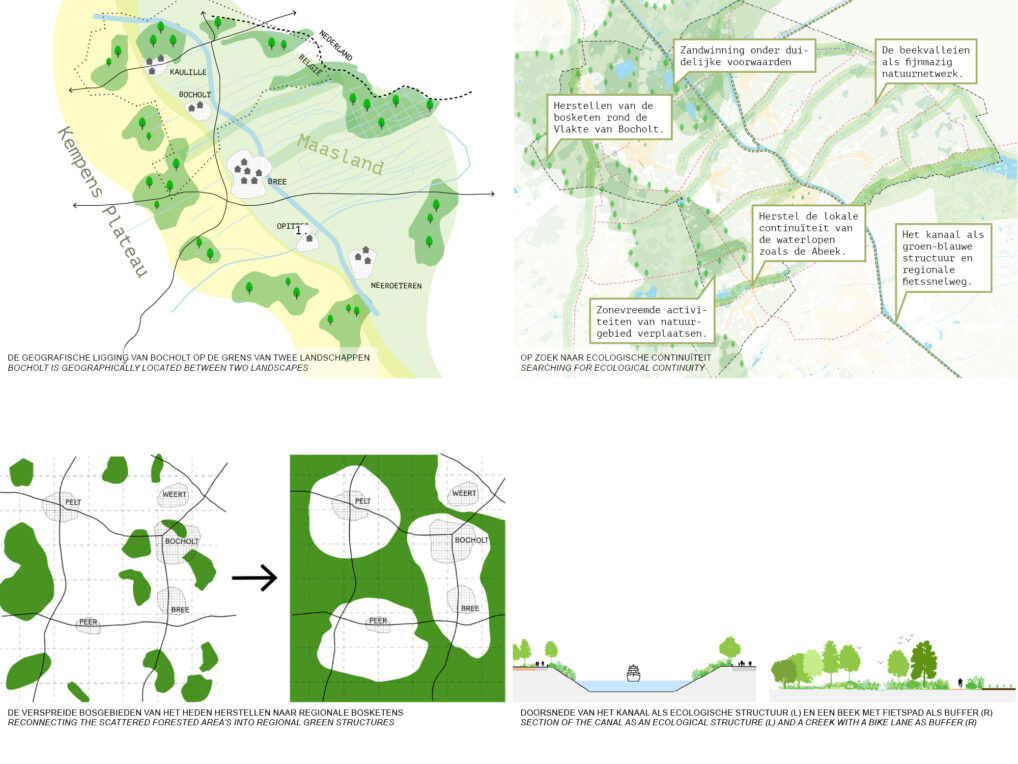 Bocholt is gezegend met een fantastisch landschap met vele beken die de gemeente kruisen en is daarmee een populaire recreatieve bestemming. Er mist echter een helder ruimtelijk beleid waardoor het landschap langzaam verrommeld en bestaande kwaliteiten verloren dreigen te gaan. Ook wordt er geworsteld met twee kernen die elkaar functioneel aanvullen, maar enkel met een autoweg verbonden zijn. De weg is gevaarlijk ingericht voor fietsers en de beide dorpskernen zijn zeer verhard en bieden weinig kwaliteit.
