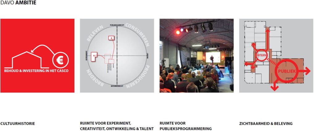 Voor de transformatie van het Havenkwartier had de gemeente verschillende oude loodsen aangekocht. Nu sloop-nieuwbouw niet meer aan de orde is, is er ook nood aan transformatieplannen voor de individuele gebouwen. Het Havenkwartier wordt dĂ© plek in Deventer waar avontuurlijke bewoners en ondernemers hun droom kunnen realiseren. Samen met de huidige gebruikers, kunstenaars en ondernemers worden scenario’s voor herbestemming en doorontwikkeling van deze bijzondere gebouwen geschetst.