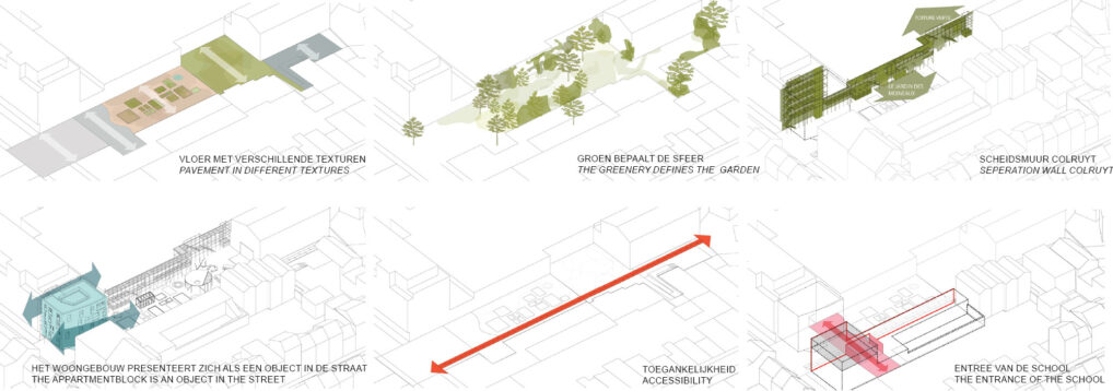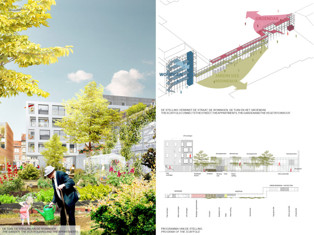 Enkele aanstaande veranderingen rondom de Mussensteeg vragen om een intelligent plan voor de duurzame doorontwikkeling van de Mussentuin. Sanering van de grond, de nood aan betaalbare woningen en toegang tot het onderzoekscentrum voor stedelijk groen maken een transformatie noodzakelijk. De informele groene sfeer die de kwaliteit van de huidige moestuin bepaalt, vormt de basis van het ontwerp voor de toekomst van deze on-stadse plek in het hartje van Brussel. Juist door te zoeken naar maximalisering van de invloedsfeer van de tuin vermijden we een verbrokkeling van de tuin. Alle andere elementen worden vormgegeven als ‘objecten in de tuin’.