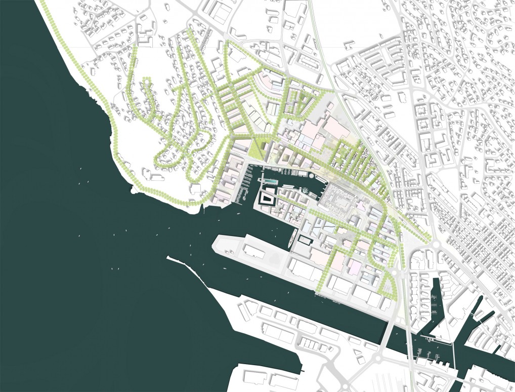 In de komende 30 of 40 jaar zullen de huidige havenactiviteiten stap voor stap verplaatst worden. Hierdoor ontstaat ruimte voor (her)ontwikkeling. Srandveikaia is de belangrijke eerste stap in deze geleidelijk transformative van haven naar hedendaagse stad waar wonen, werken, cultuur, ontspanning en educatie samen kunnen plaatsvinden. Onze strategie benadrukt het belang van locale initiatieven als aanjagers van de transformatie. Het uiteindelijke framework is afgestemd op deze initiatieven en vormt de context waarin deze succesvol kunnen zijn. Vanuit die eerste stappen wordt het plan verder uitgebouwd tot een volwaardige lange termijn strategie. Het getoonde eindresultaat is een mogelijke toekomst voor de haven.
