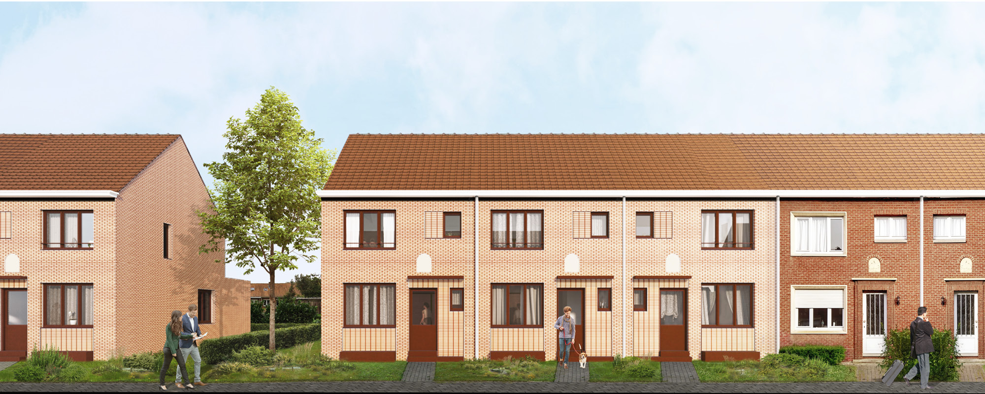 In opdracht van Woontrots zal Woonwerk Architecten In samenwerking met Dethier en Machiels Building Solutions bv instaan voor de vervangingsbouw van 33 sociale woningen in de tuinwijk. De combinatie van off-site geproduceerde houtskeletbouw met traditioneel gevelmetselwerk zorgt voor behoud van het karakter van de wijk. De bestaande woningen worden vervangen door duurzame, bio-based, enenergiezuinige E=0 woningen. Met deze Off-site aanpak zullen de bewoners reeds na enkele maanden kunnen terugkeren in een nieuwe woning.