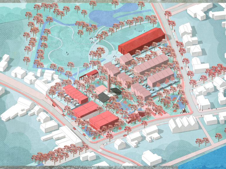 Het voorstel zet daarom in op verdichting op de hoger gelegen noordelijke gronden, om zo een veilige en toekomstbestendige woonomgeving te garanderen. Deze strategische keuze maakt het mogelijk om het zuidelijke deel te herdefiniëren als een blauwgroen landschap, ontworpen om water op te vangen, biodiversiteit te versterken en bescherming te bieden tegen overstromingen, zowel voor de site als de bredere omgeving.