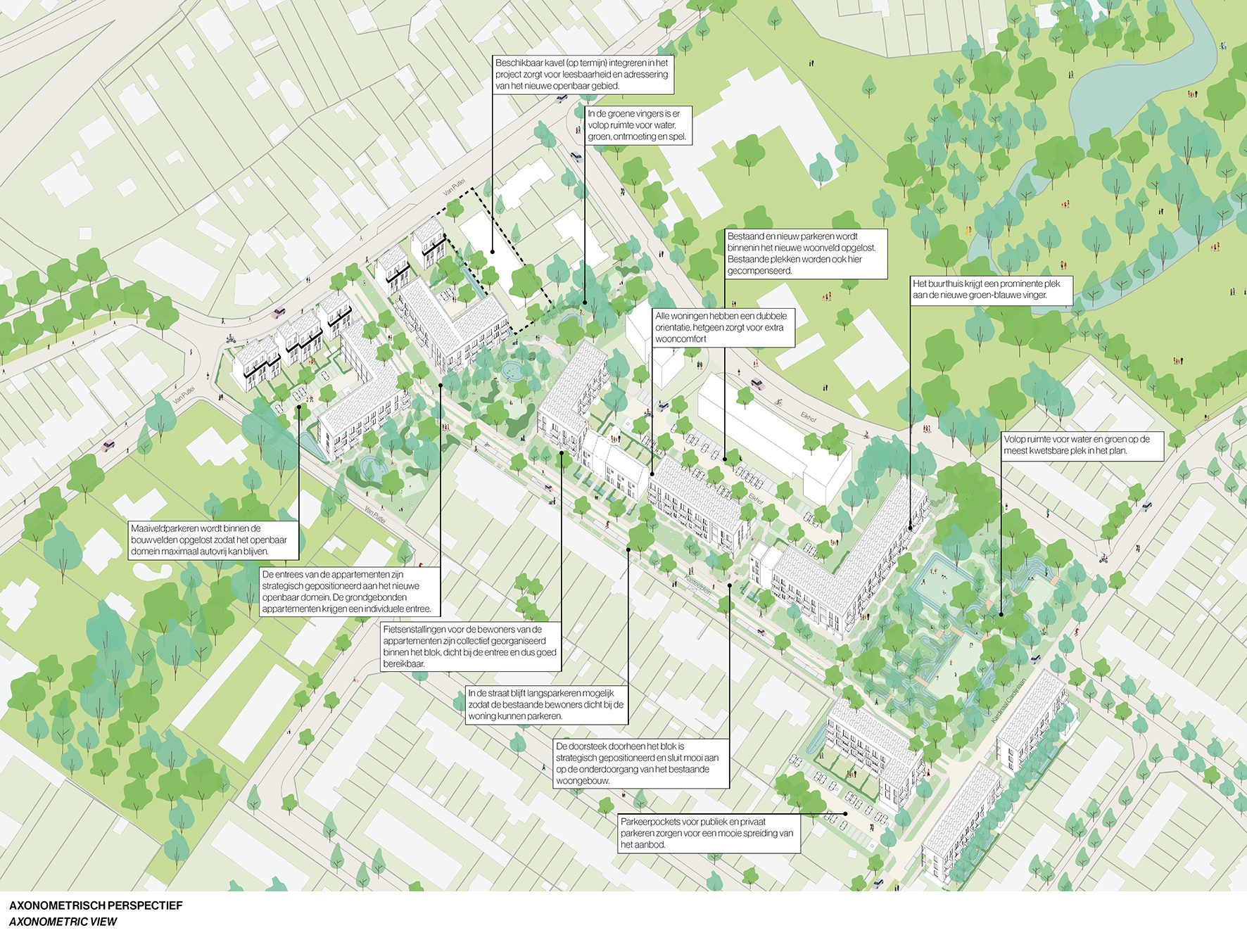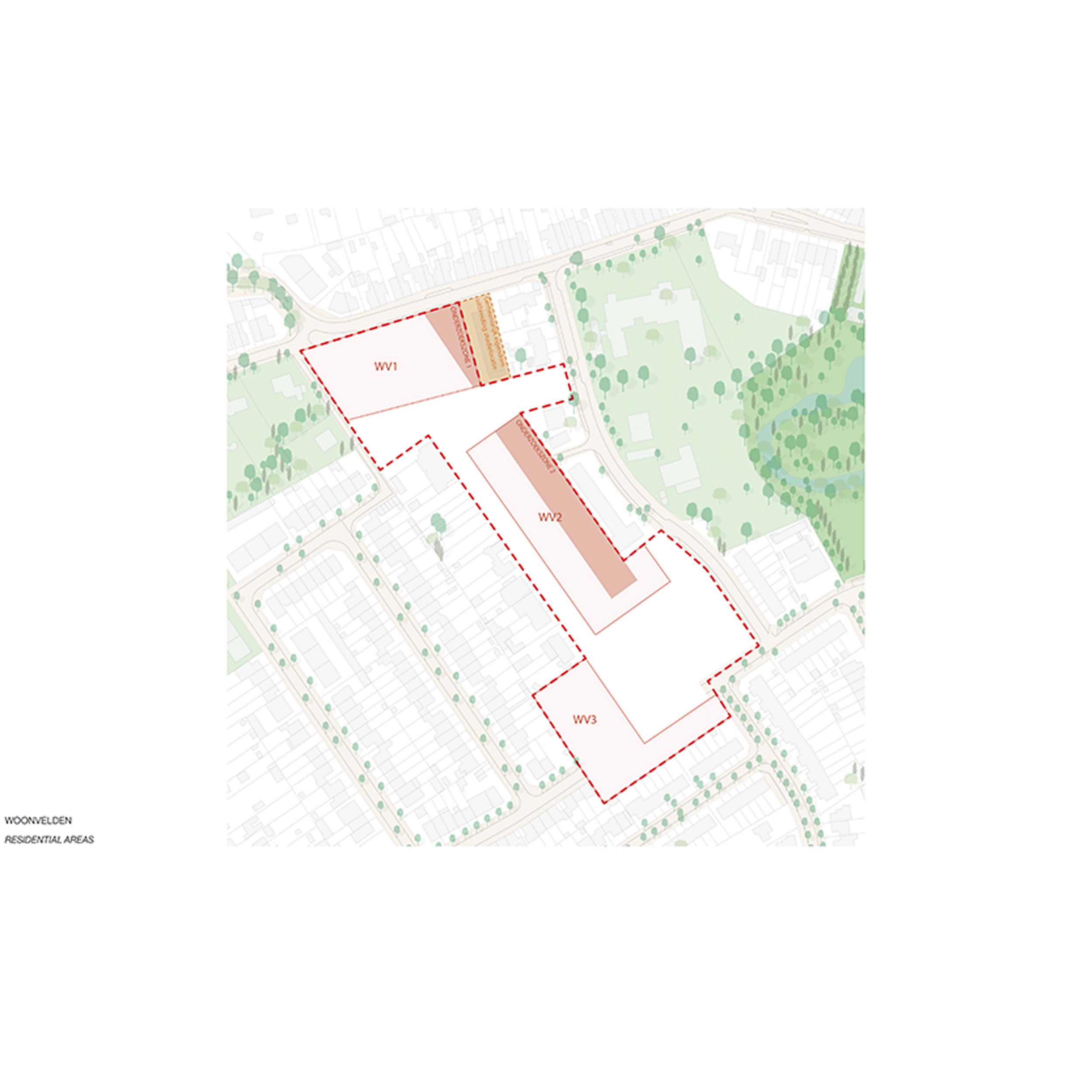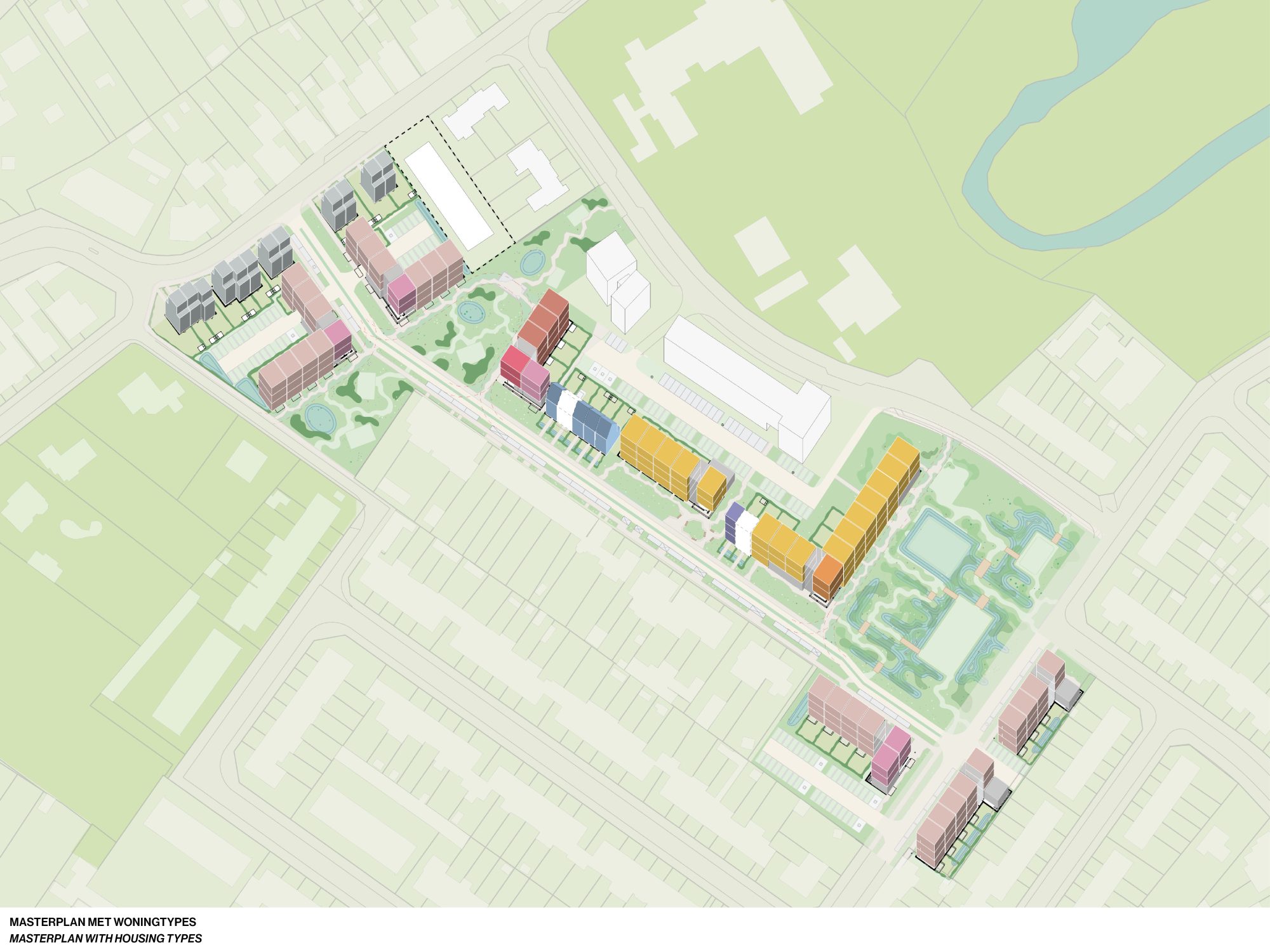 Met behoud van de kernprincipes van het oorspronkelijke masterplan (drie compacte woonhoven en twee groene vingers), geeft het voorstel een nieuwe interpretatie aan deze elementen. De woonhoven krijgen een sterkere ruimtelijke identiteit en water wordt ingezet als structurerend element, via een systeem van wadi’s, grachten en een parkvijver.