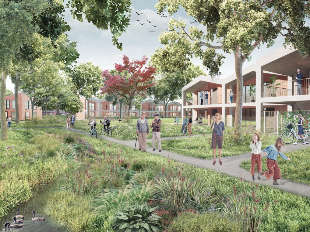 De compactere bouwvelden zorgen voor ruimte en kwaliteit in het publieke domein. Hier is nu ook ruimte voor spelen, ontmoeten en ecologie. De openbare ruimte is voor de voetganger en de fietser, de auto is te gast maar de woningen, bestaand en nieuw zijn allen goed bereikbaar.