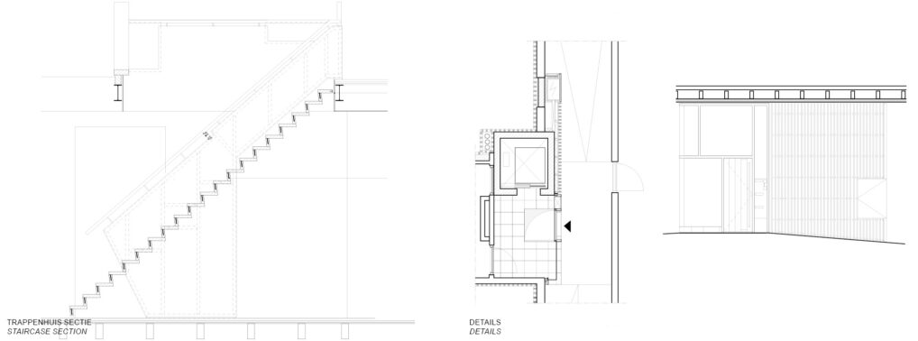De plattegronden hebben een U-vorm die zich om het bestaande trappenhuis vouwt. De grote open ruimten zijn bruikbaar voor diverse woon- en of werkvormen. Functionele ruimten zoals lift, garderobe, keuken, berging, toilet en douche zijn opgenomen in een compacte, plastisch vormgegeven centrale kern. Hierdoor blijft het karakter van de bestaande monumentale ruimte behouden.