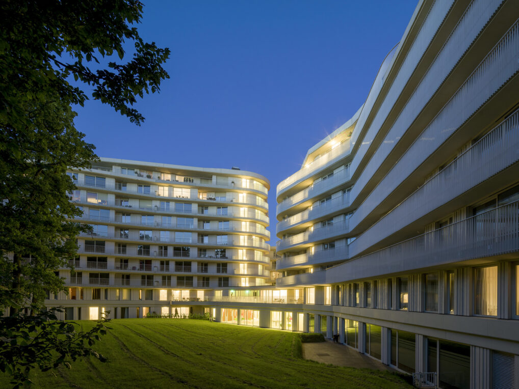 Op de begane grond bevinden zich de zorgvoorzieningen, op de eerste verdieping het kleinschalig groepswonen en daarboven bevinden zich de zelfstandige appartementen. Om het gebouw een lichte uitdrukking te geven, heeft het gebouw een witte tint gekregen. Samen met de schegvormige plattegronden en de gelaagde gevels geeft deze kleur het gebouw een vriendelijk karakter. Met zijn ronde hoeken en welvingen heeft het gebouw een comfortabele uitstraling, met een allure die Heemstede waardig is.