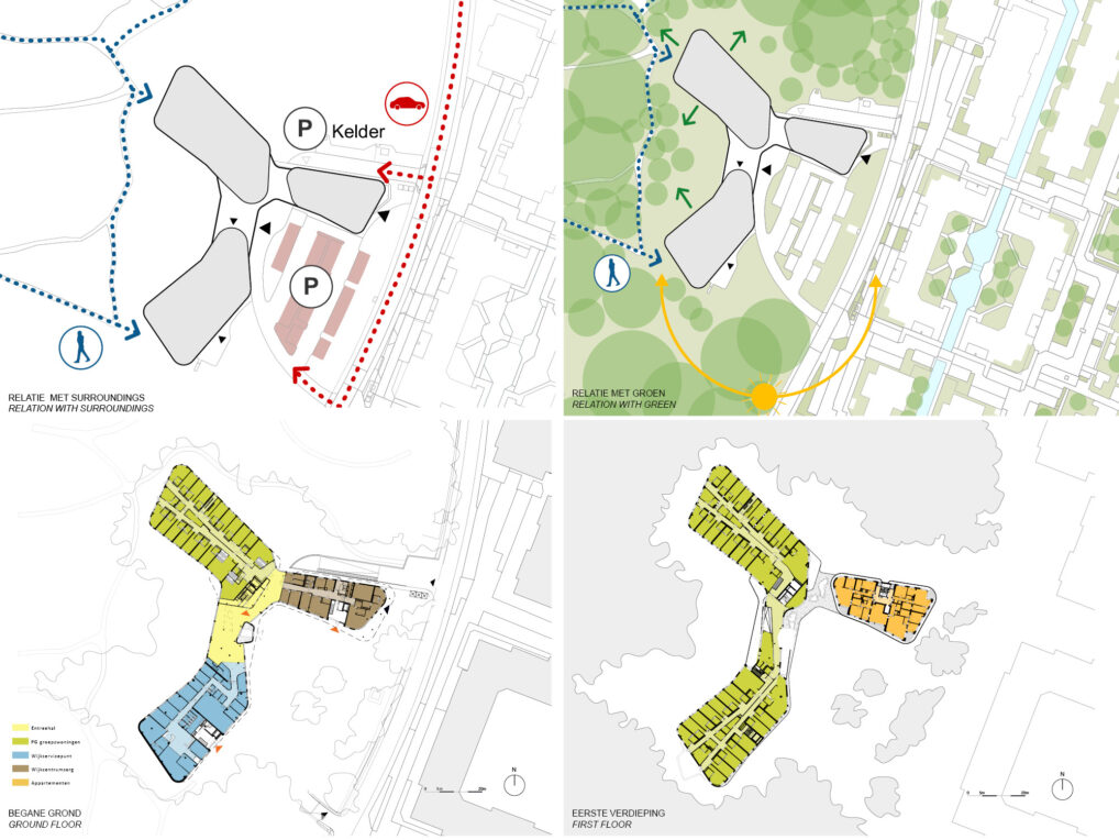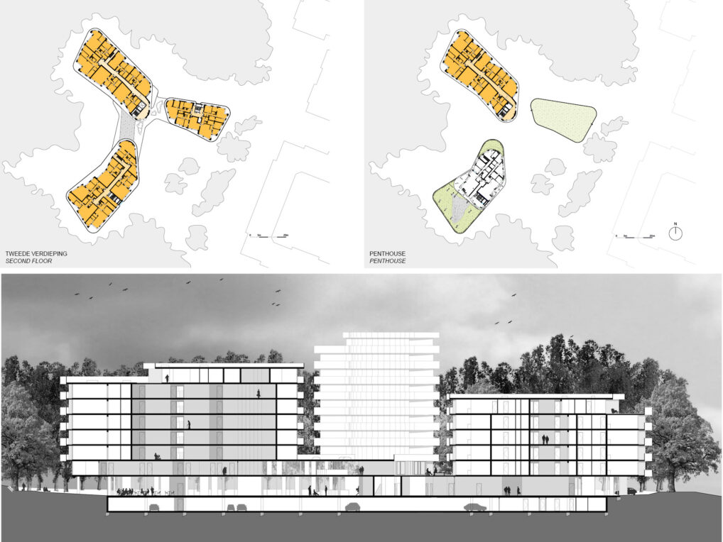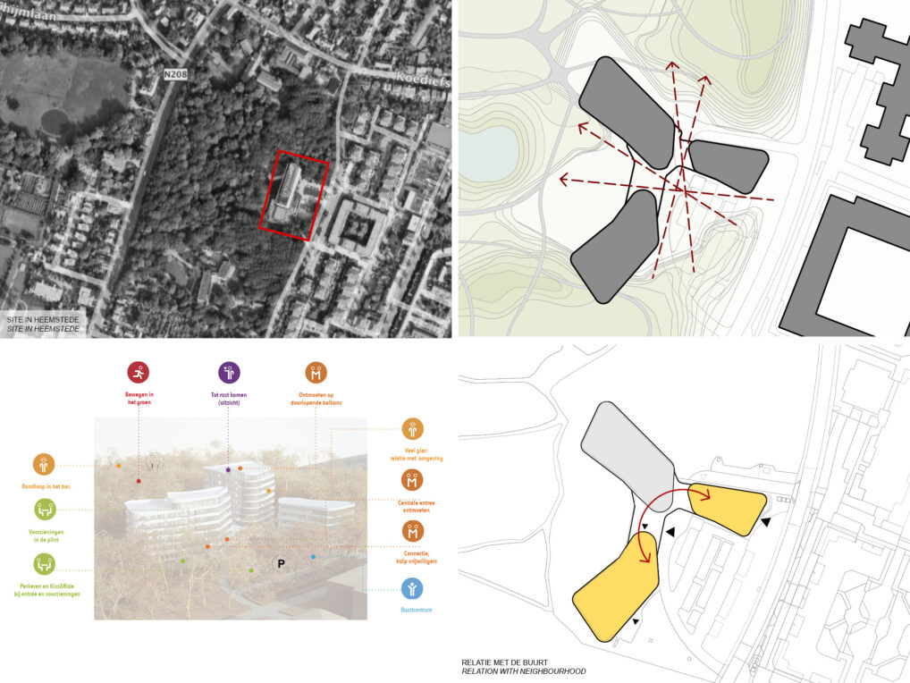 In een prachtig park aan de voet van de duinen in Heemstede wordt een woonzorg centrum voor ouderen gerealiseerd. In een prijsvraag werd het ontwerp van Drost en van Veen architecten gekozen. De begroeide heuvels in de omgeving en de belevingswereld van ouderen zijn de thema’s voor het ontwerp. Om het gebouw minder massief te maken is het gefragmenteerd in drie losstaande massa’s.