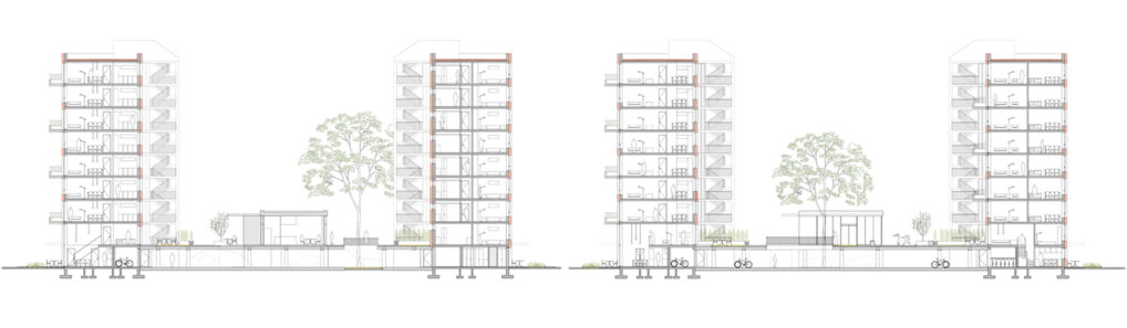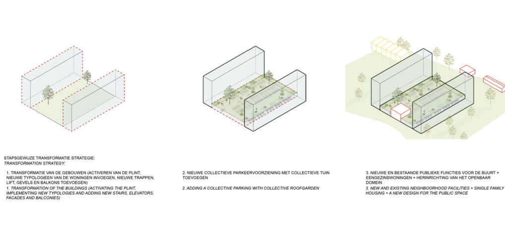 De Sint-Niklase Maatschappij voor de Huisvesting wil 2 appartementengebouwen met in totaal 98 woningen renoveren en transformeren zodat de woningen opnieuw voldoen aan de hedendaagse comfort eisen. De bestaande gebouwen dragen door de gesloten plinten weinig bij aan de kwaliteit van het (openbaar) gebied. Het openbaar domein is deels groen maar wordt hoofdzakelijk gedomineerd door infrastructuur en (individueel) parkeren. Dit transformatieproject vernieuwt het woningaanbod en zorgt voor een kwaliteitsimpuls aan verblijfskwaliteit van de woonwijk.