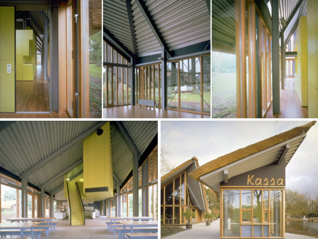 De nieuwe entree tot het park omvat een voetgangersbrug en een aantal entreegebouwen. De brug verbindt de parkeervoorzieningen met het entreegebied. in dit gebied bevinden zich de kassa’s, een kantoorgebouw met een souvenirwinkel en een restaurant. Vanaf de hoofdentree loopt een lineaire route het park in. Om deze lijn te versterken heeft het entreegebied een duidelijke staart: de brug, en kop: het restaurant. De brug en de gebouwen behoren door hun vormentaal, materiaalgebruik en constructie tot één ‘beeldfamilie’. De uitgangspunten bij de uitwerking van de gebouwen zijn de identiteit van de omgeving, de belevingswereld van kinderen en de relatie tussen gebouw en natuur. Het concept voor elk van de gebouwen is een rechthoekige glazen doos – voor een maximale relatie tussen binnen en buiten – met een gevouwen bedekking van riet. Deze organische huid beschermt en spiegelt zich aan de omgeving, de luxe villa’s van Hillegersberg met hun rieten kappen.
