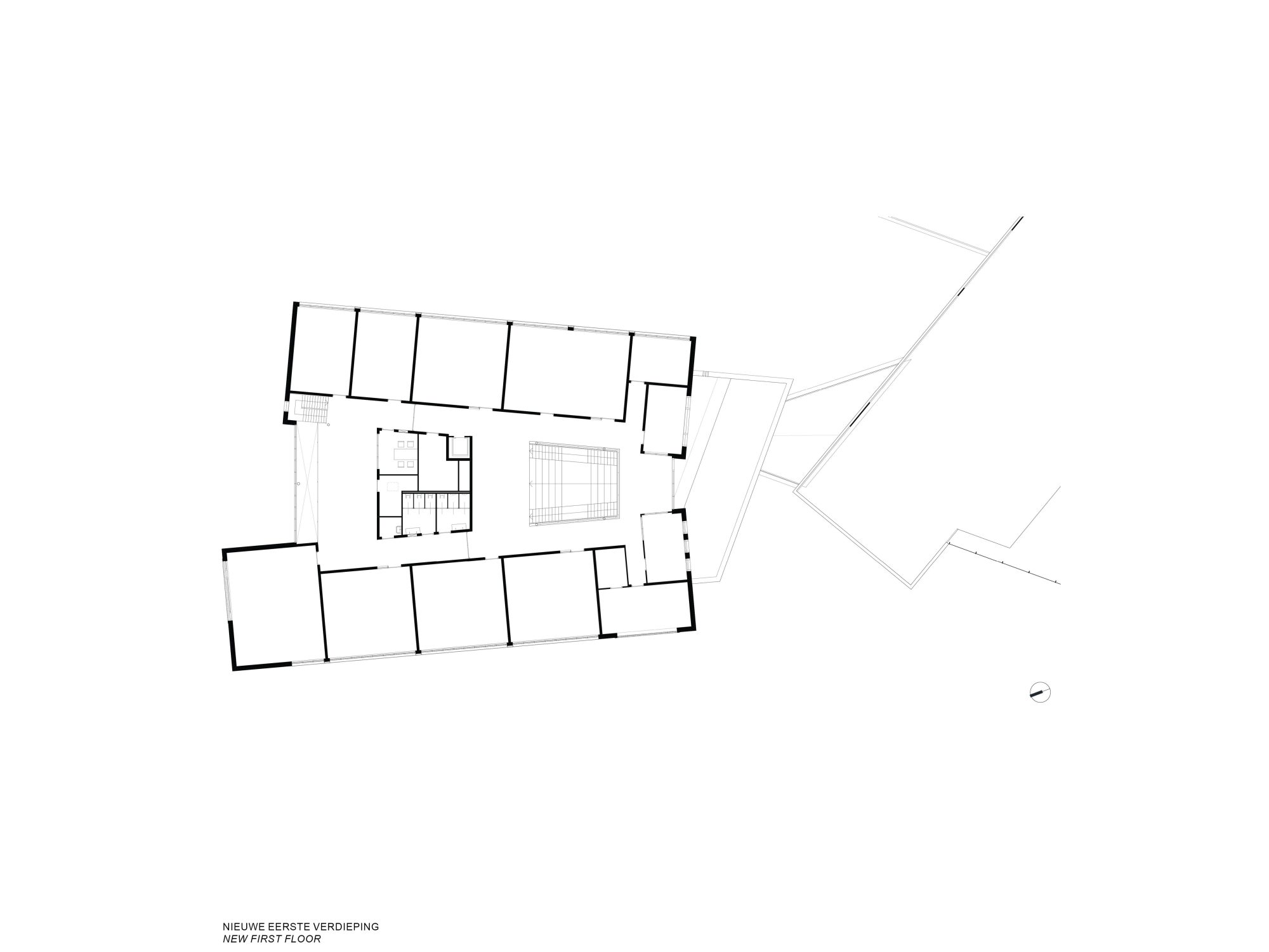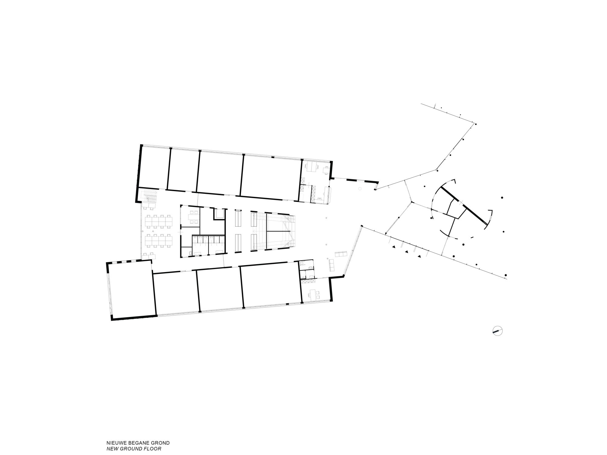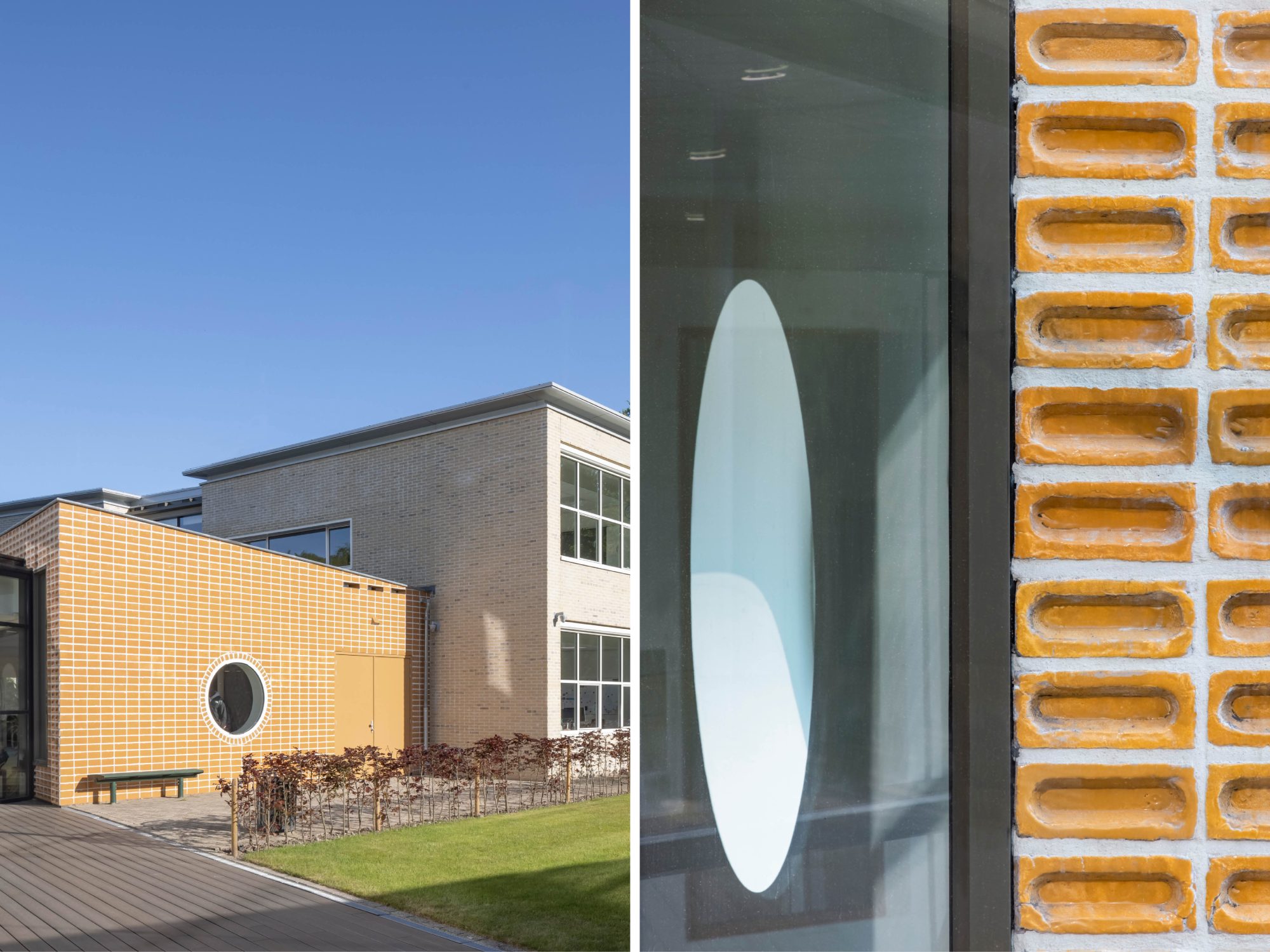 In een zorgvuldige analyse van het rijksmonument en zijn omgeving zijn een aantal kernmerken gevonden die als bruikbare ingrediënten voor de nieuwbouw hebben gediend. Denk aan volumetrische configuraties, verhoudingen in de gevels, architectonische ingrepen en elementen. De nieuwbouw zoekt in materiaal en compositie het verwantschap op met het monument, en maakt gebruik van gelijkaardige elementen zoals de opgetilde dakrand, de royale bandramen en een opgetilde sokkel. De nieuwe vleugel wordt met een klein afzonderlijk volume gekoppeld aan de school: een terugkerend thema in het monument. De positie tegenover de historische A-vleugel brengt beide volumes in evenwicht met elkaar, waardoor de benadering van de hoofdingang in balans is en meer vanzelfsprekend. Op deze wijze voegt de nieuwbouw een nieuwe tijdslaag toe aan de school, een hedendaagse interpretatie van de originele uitgangspunten.
