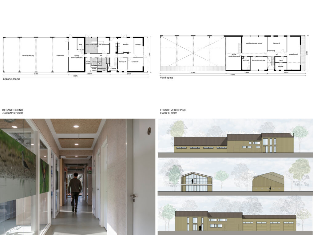 Het ontwerp van het nieuwe uitvoeringskantoor is gebaseerd op het principe van een traditionele kop-hals-romp boerderij. Dit is eigentijds vertaald naar een duurzaam multifunctioneel gebouw met een ingetogen én aansprekende uitstraling.
