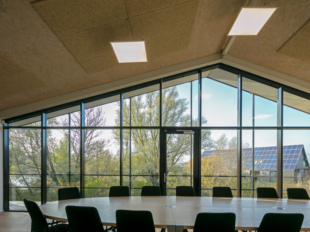 Het kantoorgedeelte aan de kop van het gebouw heeft deels een publieksfunctie. De vergaderruimtes op de bovenverdieping kunnen daarbij onafhankelijk functioneren van de kantoorfuncties op de begane grond. Het grote geveloppervlak voorziet alle werkplekken en vergaderruimtes optimaal van daglicht en vrij zicht op het Buitencentrum Oostvaardersplassen. Het afwerkingsniveau van het interieur in het kantoorgedeelte is representatief. Het facilitaire deel, met onder meer een forensisch sectielab t.b.v. onderzoek naar dode fauna, werkplaats, toiletten en kleedruimtes zijn utilitair uitgevoerd. De schuur is minimaal afgewerkt. Om te zorgen voor een maximale duurzaamheid is het gebouw uitgevoerd in hout dat afkomstig is uit de eigen Staatsbosbeheer bossen in de direct omgeving.