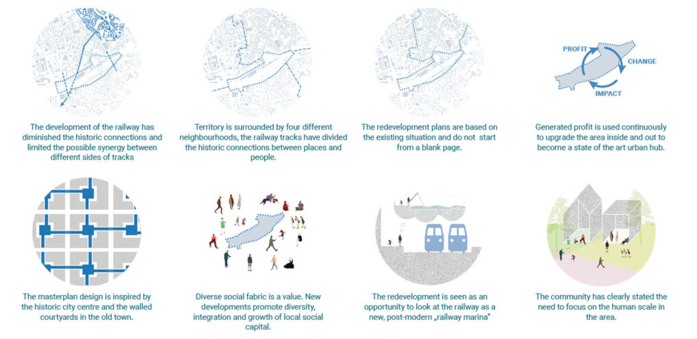 In de wedstrijd van gemeente Vilnius en de Litouwse Spoorwegen werd gezocht naar een nieuwe adem voor het statige stationsgebouw uit het Soviet tijdperk. Er werd niet enkel gezocht naar het efficient functioneren van de verschillende mobiliteitsstromen, maar de vraag was hoe het station de katalysator zou kunnen vormen van de ontwikkeling van het omliggend stedelijk gebied.Hoe kan het nieuwe station een verbindende schakel zou kunnen vormen tussen twee helften die, mede door het aanwezige hoogteverschil, tot op heden los van elkaar functioneren?Â