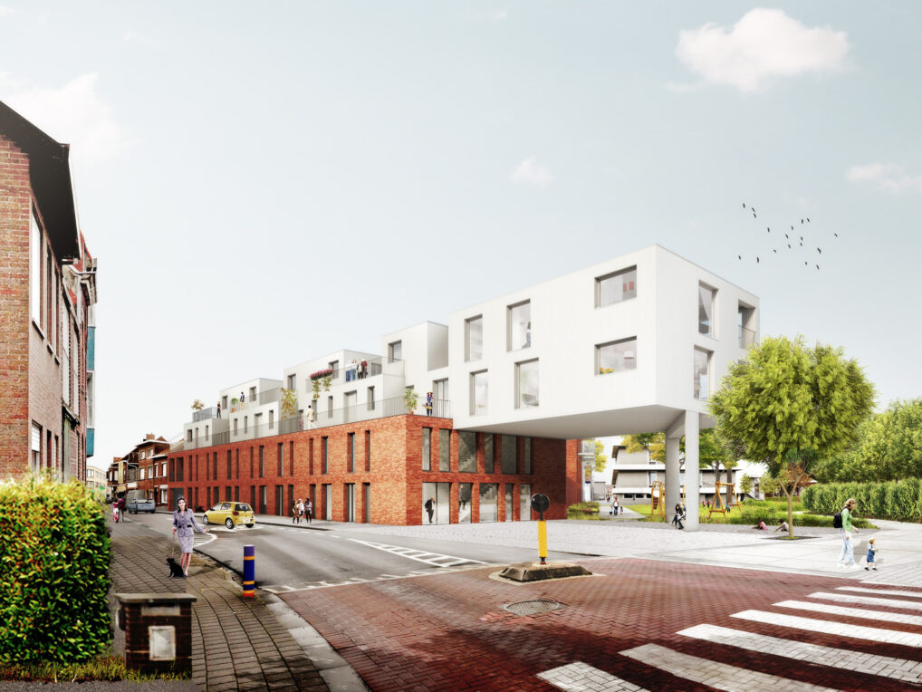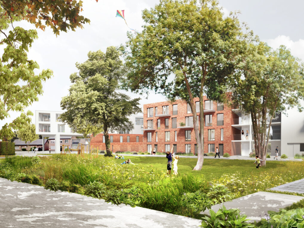 Programma: 34 appartementen en gestapelde woningen 45 parkeerplaatsen, publieke ruimte met buurttuin.