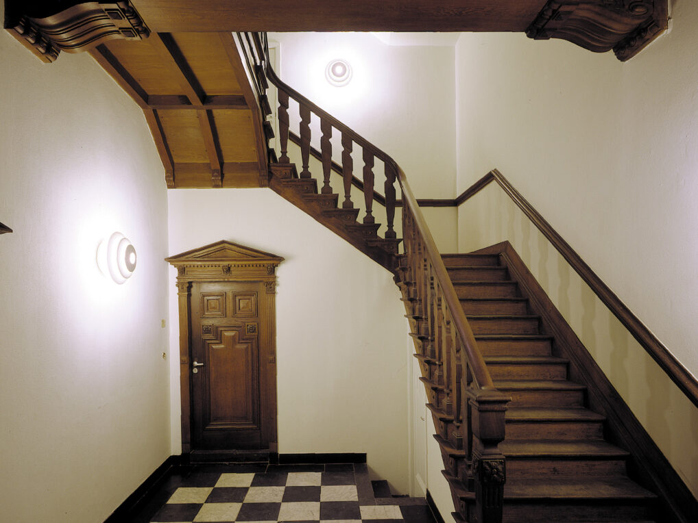 Commissioned by Stedelijk Wonen Rotterdam, Drost + van Veen Architecten made a design for the restoration and renovation of the building into three modern luxury apartments. Parts of the original interior had disappeared due to a series of earlier renovations. However, the monumental stairwell with its fireplace, the stained glass skylight and the teak doors were still in original condition. In the design an apartment is situated on the ground floor and on the first floor. The third apartment is located on the second and third floor and has a roof terrace. A major procedure is the key lift that comes out directly in any living space.
