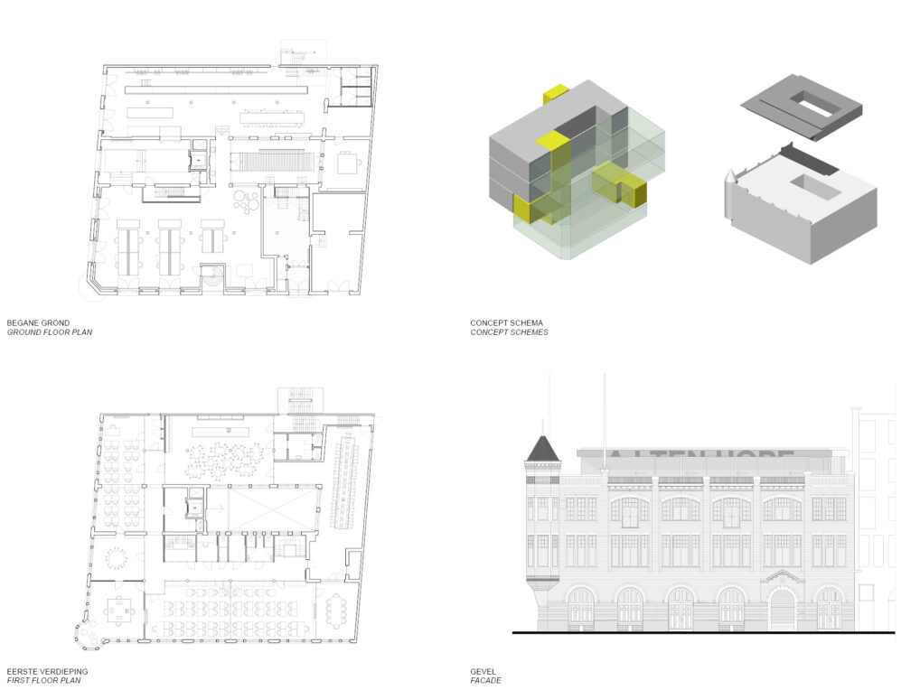 After extensive analysis, the combinations were made that lead to demolition, reconstruction, restoration and new construction, whereby a limited modern expansion on the roof would be possible. With regard to the interior, each floor has its own distinct atmosphere, related to its previous use. The existing architectural qualities form the basis for the new interior. Separating as many original details as possible in the forged state. The integration of the added technology (elevator, construction, installations) received special attention.