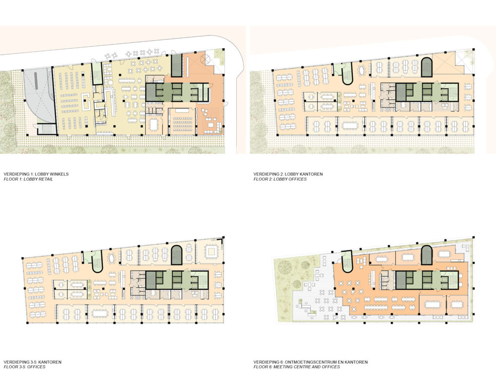 Our proposal gives an accurate answer to the division of the program in the brief. But of course the concept of the building is flexible to be able to handle changes in the division between the different functions. The surface of the floors reduces slightly every time a setback changes the shape of the building. The office floors are slightly larger to reserve space for the services around the core. The housing floors are slightly smaller to allow enough light in the apartment’s interiors, but these floors are also suitable to house comfortable office spaces.
