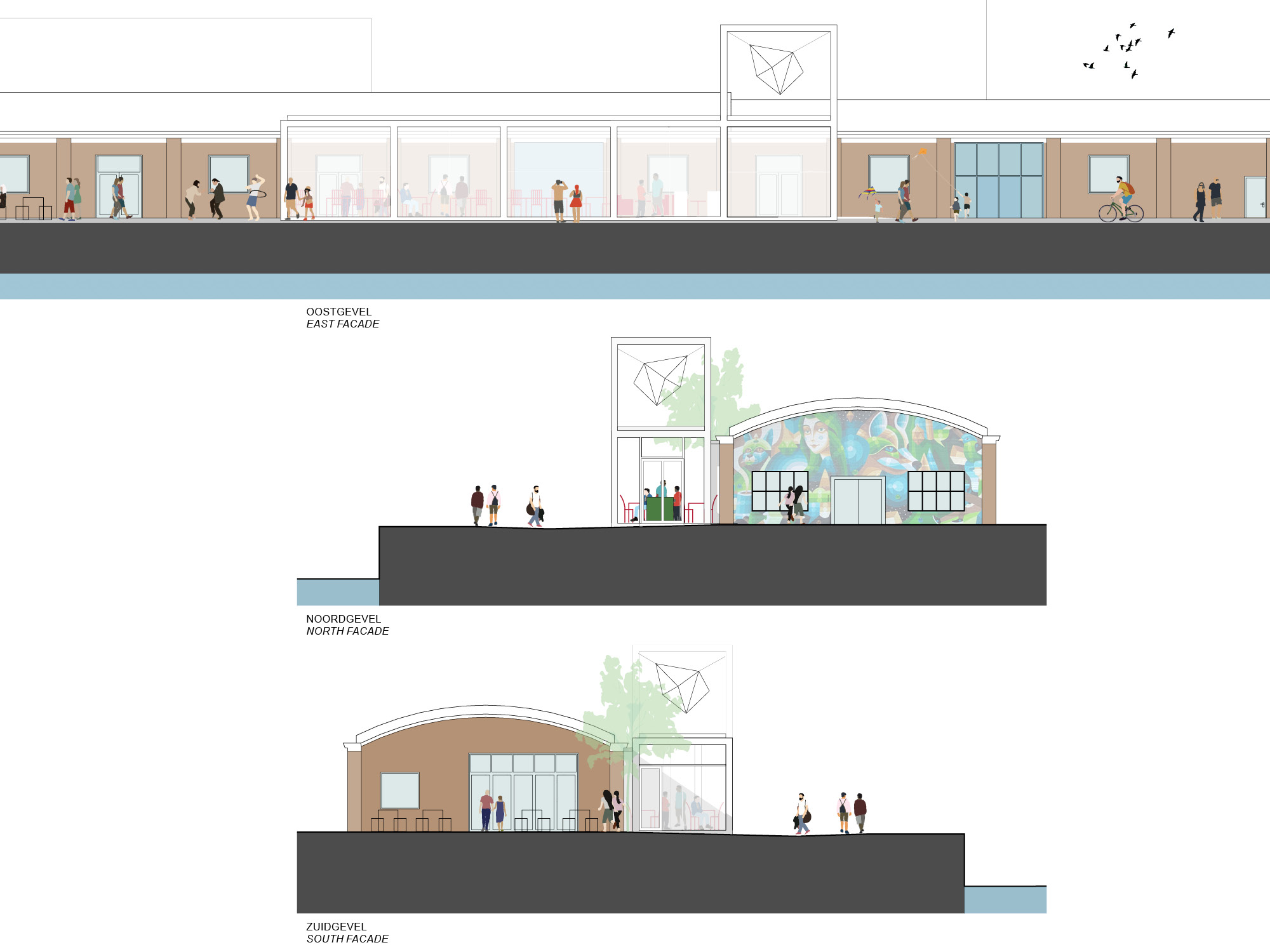 The proposed volume will be positioned against the existing warehouse ‘as if a vierendeel truss was thrown onto the docks’. The simple extension is transparent revealing the original facade behind. The extruded module on the north side will in the future host an art installation signaling the entrance to the surroundings.