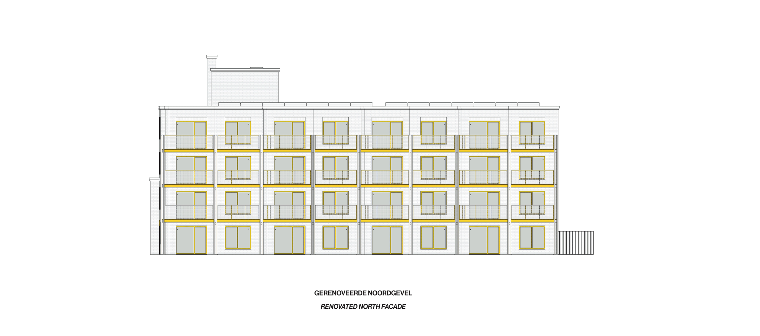 The new gallery structures added to the front and rear building edges allows for sunlight and ventilation, while the existing trees and vegetation on site provide sufficient screening and privacy for the residents. The shared rear garden on the ground floor will become more accessible, enhancing daily life and interaction among residents.