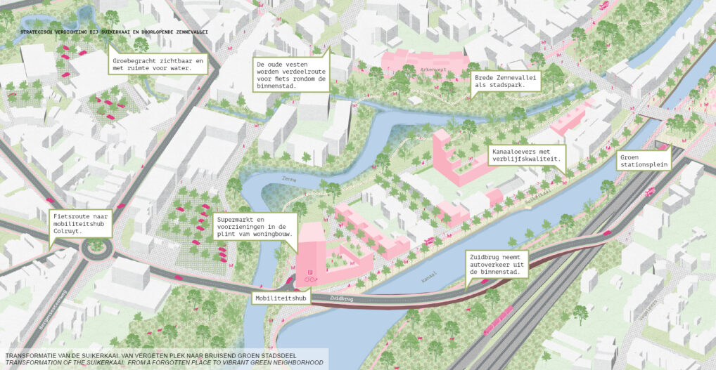 By reconnecting the city we create opportunities for densification, greening and offering solutions for mobility challenges. Developments in the heart of the city act as a catalyst for the restoration of green connections, creek and river valleys and helps restructure mobility, energy and use of space.