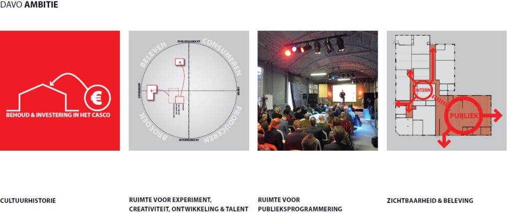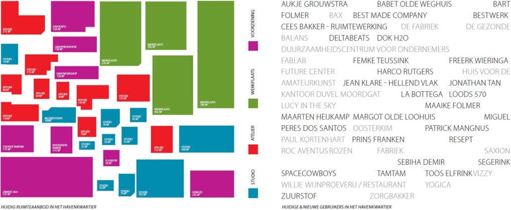 To make the transformation of the harbor area possible, the municipality bought several old ware houses and buildings. After changing the urban strategy, demolishing these buildings went off the agenda and plans for adaptive re-use became necessary. The dockyards of Deventer will become the place for adventurous inhabitants and entrepreneurs to realize their dreams. Together with current users, artists and entrepreneurs, the various scenarios for transformation and reuse were developed.