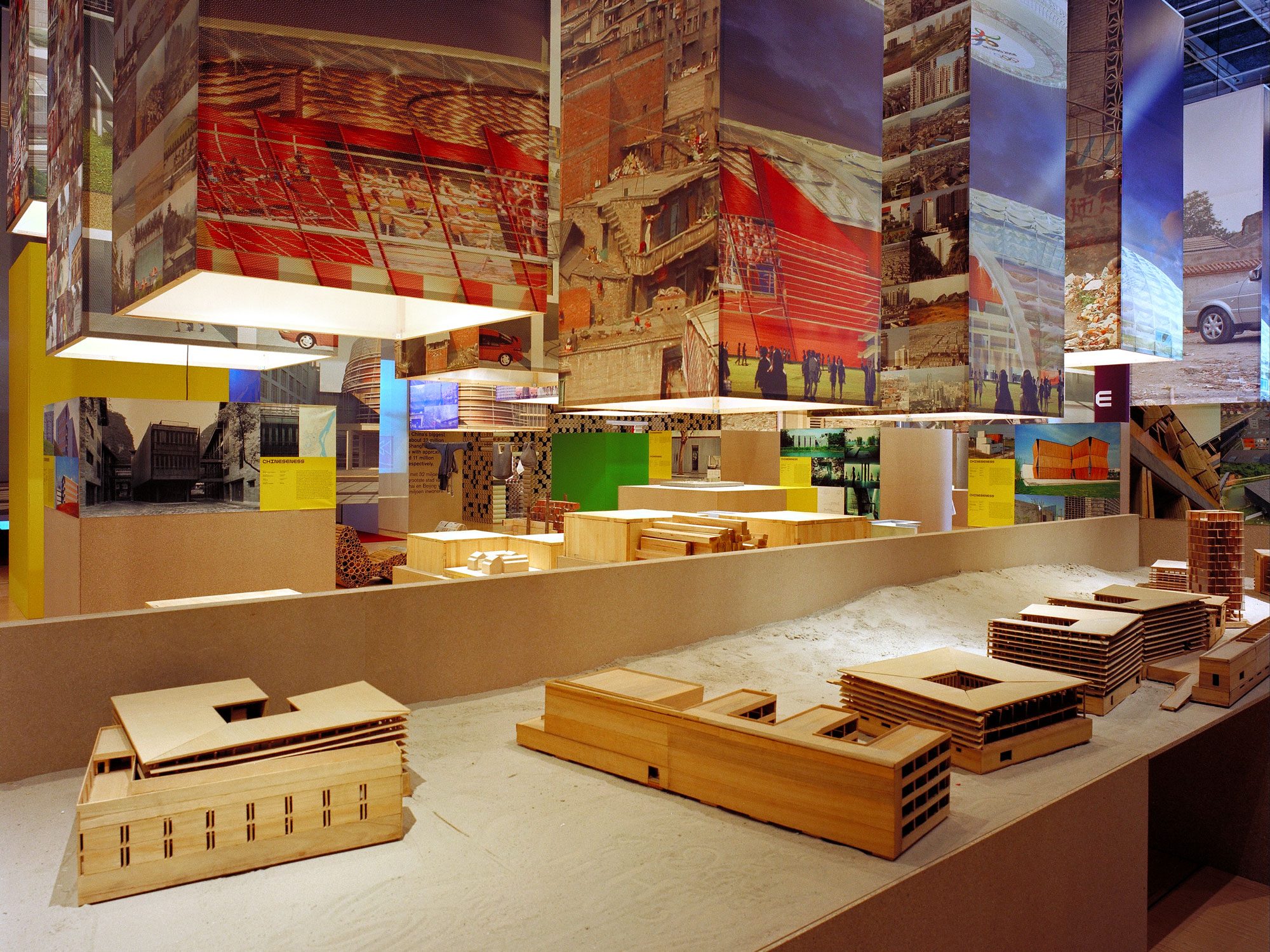 How to represent the collective image of a new Chinese architectural avant-garde? There currently exists a group of architects trying to react on the architectural climate. Are these architects really acting as a group? Or are they individually striving to offer an alternative? The exhibition design offers a generic display method in which the 50 projects contribute to the ‘collective image’ without losing the identity of the individual designers. 50 projects of 28 architecture offices and architects were presented on 70 ‘boxes’ and 24 hanging columns of 1.80m x 1.80m each.