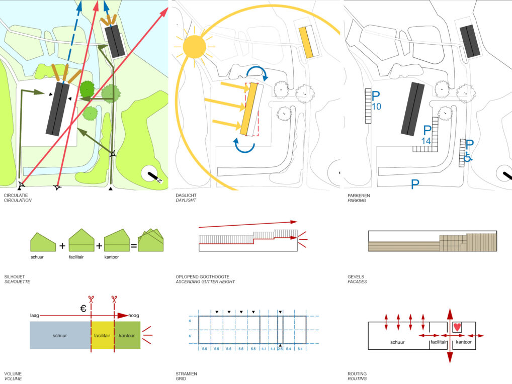 The design of the new executive office is based on the principle of a traditional head-neck-torso farm. This has been translated into a contemporary multifunctional building with a modest and appealing appearance.