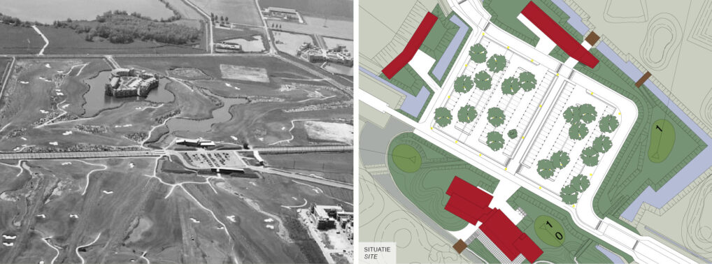 In the new Haverleij residential area near ‘s-Hertogenbosch, the houses have been grouped together in ‘castles’: massive building blocks in a green area that is largely laid out as a golf course. The Golfclub Haverleij consists of three buildings: the clubhouse, a driving range and a greenkeeper’s building. These buildings are usually spread over the site, but in order to stay within the urban development vision of the Haverleij, the buildings are grouped around the centrally located car park.