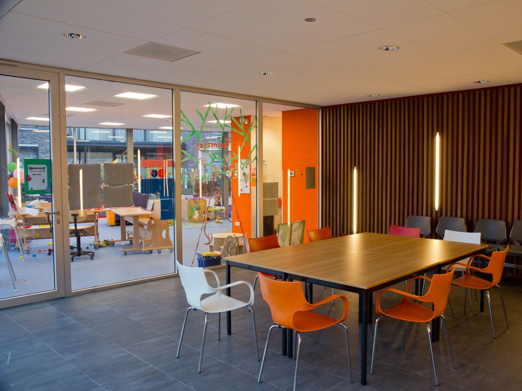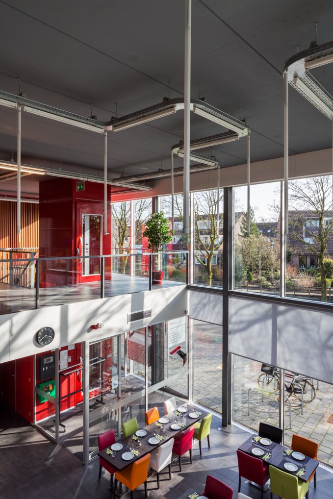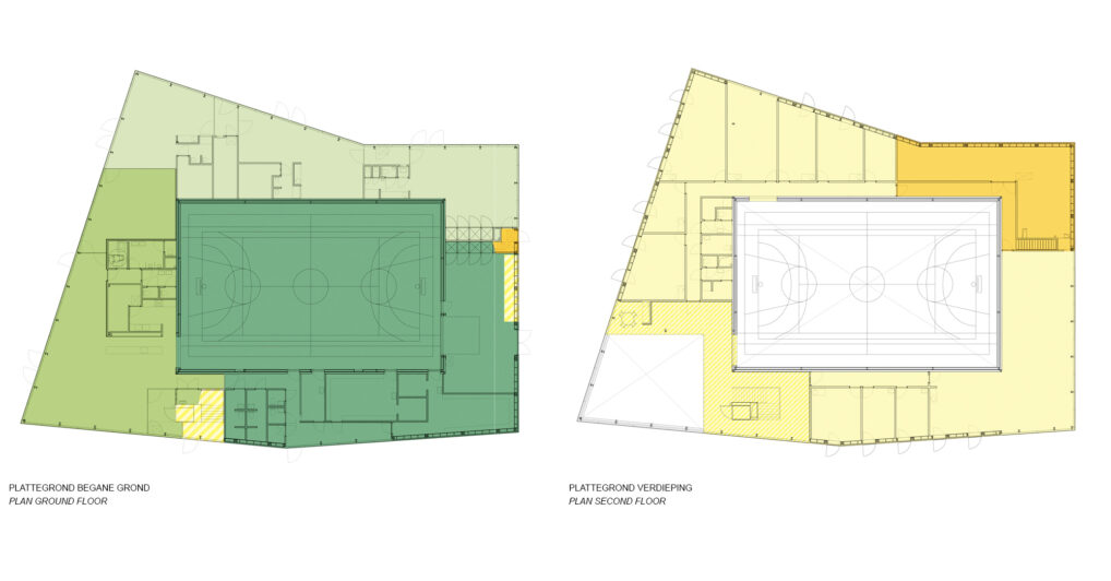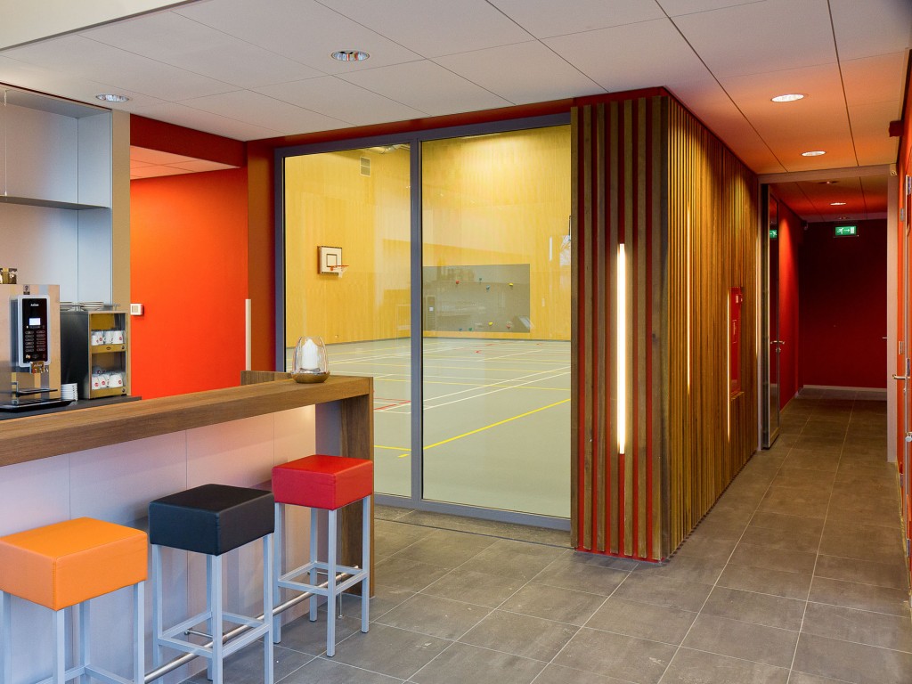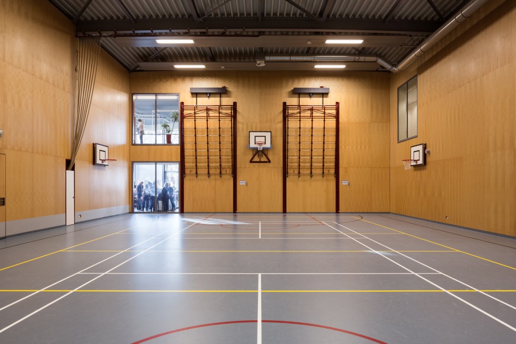 Duiven municipality wants to develop Droo-Zuid to be at the center of a residential service area. The aim is to provide housing for both younger and older people who require some form of care, so they can live amidst their family, neighbours and friends. Together with the users and the neighborhood we developed ‘Huis van Droo’; a community centre ‘new style’ – the new heart of Droo-Zuid. The sports hall, situated in the center of the building, is wrapped with other public program. The neighborhood lounge, facing the entrance of the neighborhood, is the most public place in the building. The new kindergarten, care, and other neighborhood function are all positioned around the central hall.