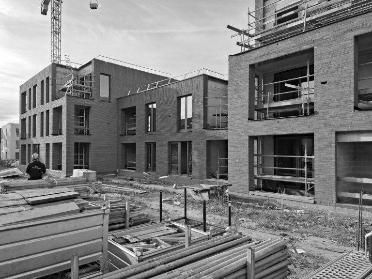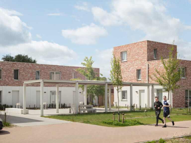 The design by Woonwerk Architecten perfectly meets these conditions. For the construction of the new homes, timber frame construction was chosen, an off-site building method where the building elements (facades, walls, floors, and roofs) are prefabricated in an industrial manner. The installation of the wind- and waterproof structure on the construction site takes only 1 to 2 days per house. Timber frame construction is a ‘dry construction method,’ where no water or cement is used, thus avoiding delays due to rain or frost.