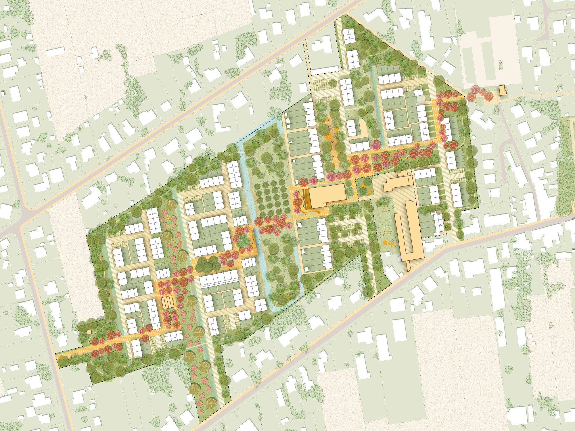 It is of great importance that the residents whose homes are being rebuilt can stay close to their social environment and remain connected to their neighborhood. Therefore, most residents will be accommodated in vacant houses in the Acacia neighborhood, and 4 transition homes will be built to temporarily provide everyone with shelter. These transition homes must be able to be built quickly so that they can accommodate people who are temporarily without a home as soon as possible. These homes will be constructed with a modern modular building system, of course, in a sustainable and ecological manner.