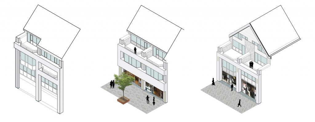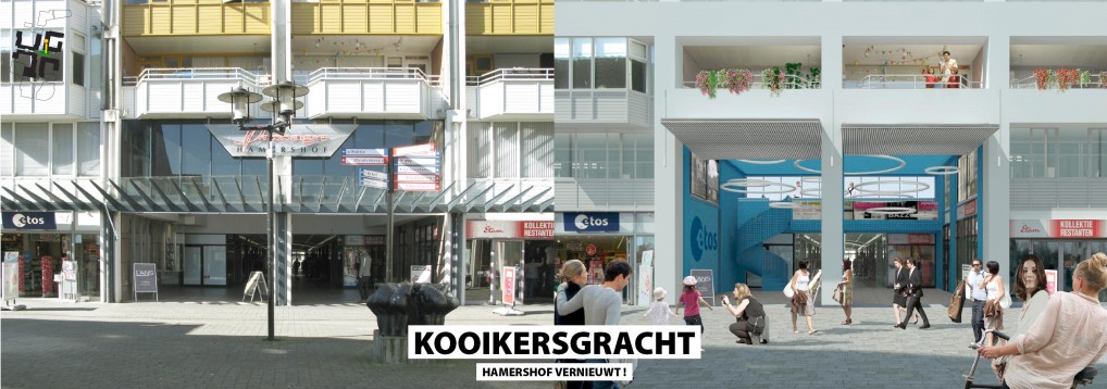 Shopping, working and living are stacked on top of each other. A visionary and ambitious concept, but the seventies architectur needs an update. Together with the owners, enterpreneurs en inhabitants we worked on a strategy for renewal for the entire center. The physical switch of the seventies architecture to a rather chique new look is an important part of the project. But also the redefinition of the image and identity of the center as a shopping center is part of the discussions. The brand needs to be defined over again and the buildings are part of that. Under the umbrella of a strong common identity we want to make the area attractive again. It has to again becom a place where people like to go, a place where shopping is more than just buying necessities.