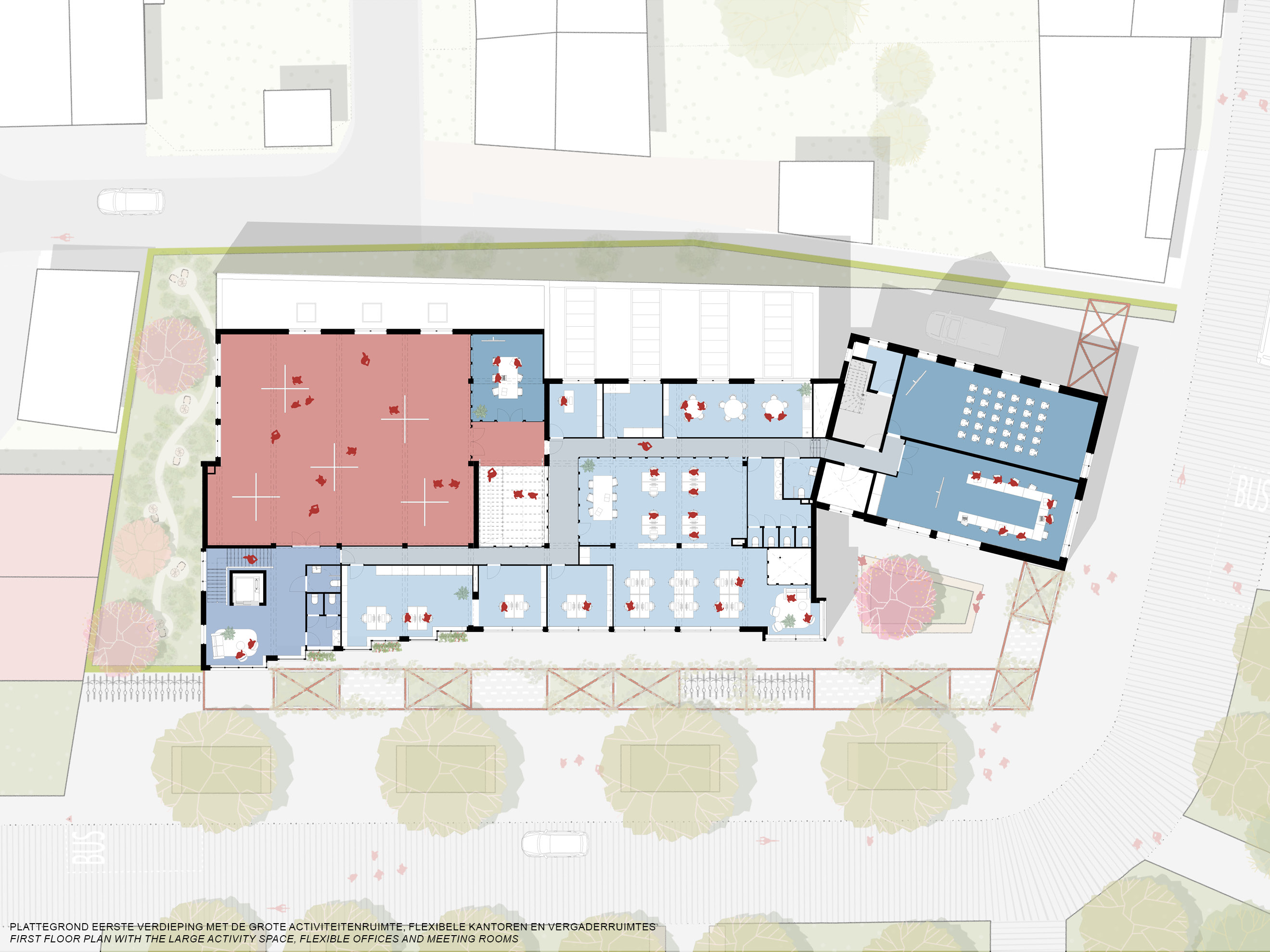 The current fire station is a landmark building on Brandweerplein in Londerzeel, its history and existence play an important role in the identity of the place. The fire station is no longer sufficient and will move to the new site along the A12 in 2026. The current barracks will then be vacant and will receive a new sustainable facility with the library and other facilities. In addition, a more integrated approach to the leisure service can be developed. It has become apparent that the destination, a cultural and social anchor point in this location, has interesting spin-off possibilities, powerful meaning for Londerzeel.