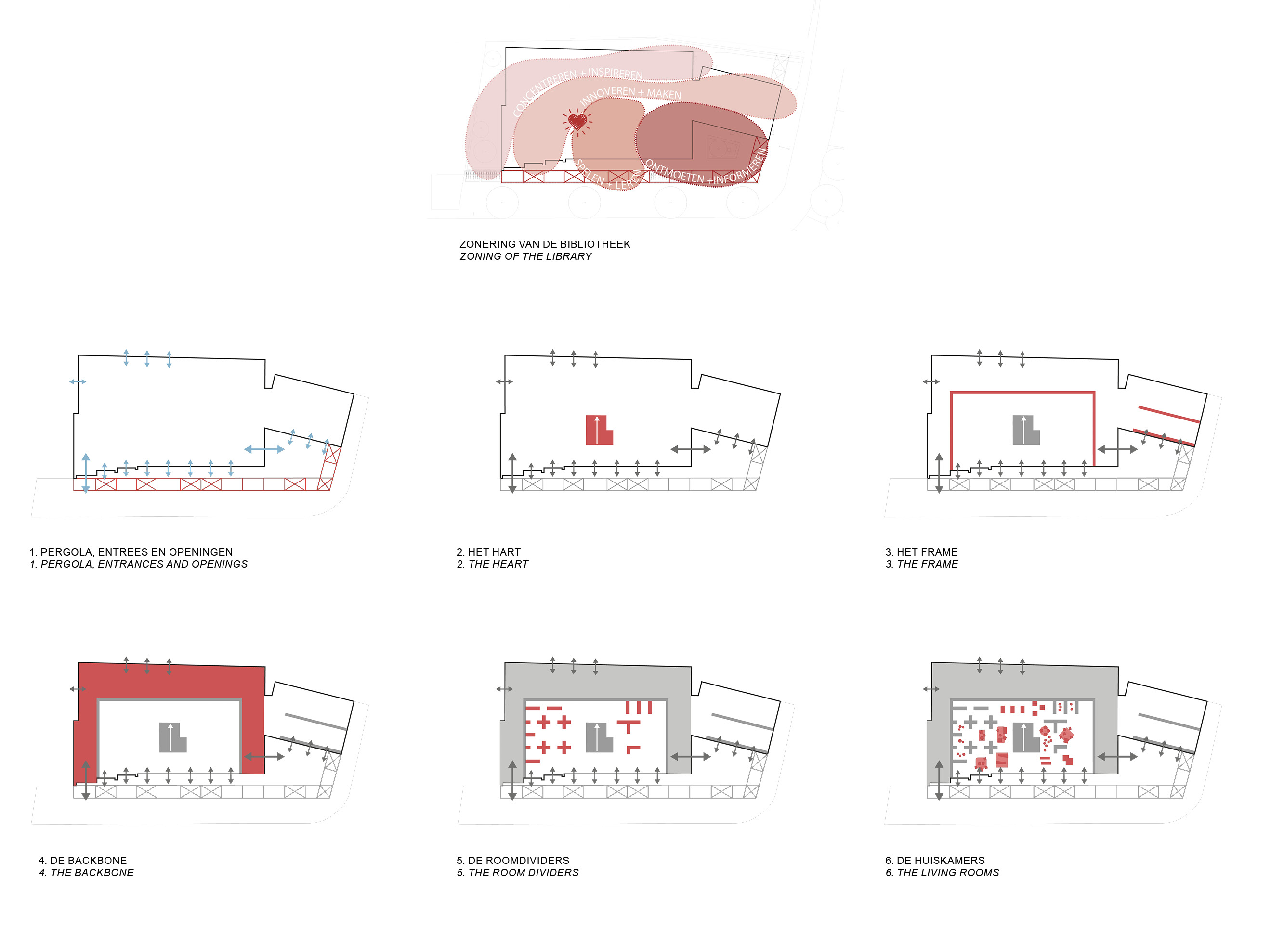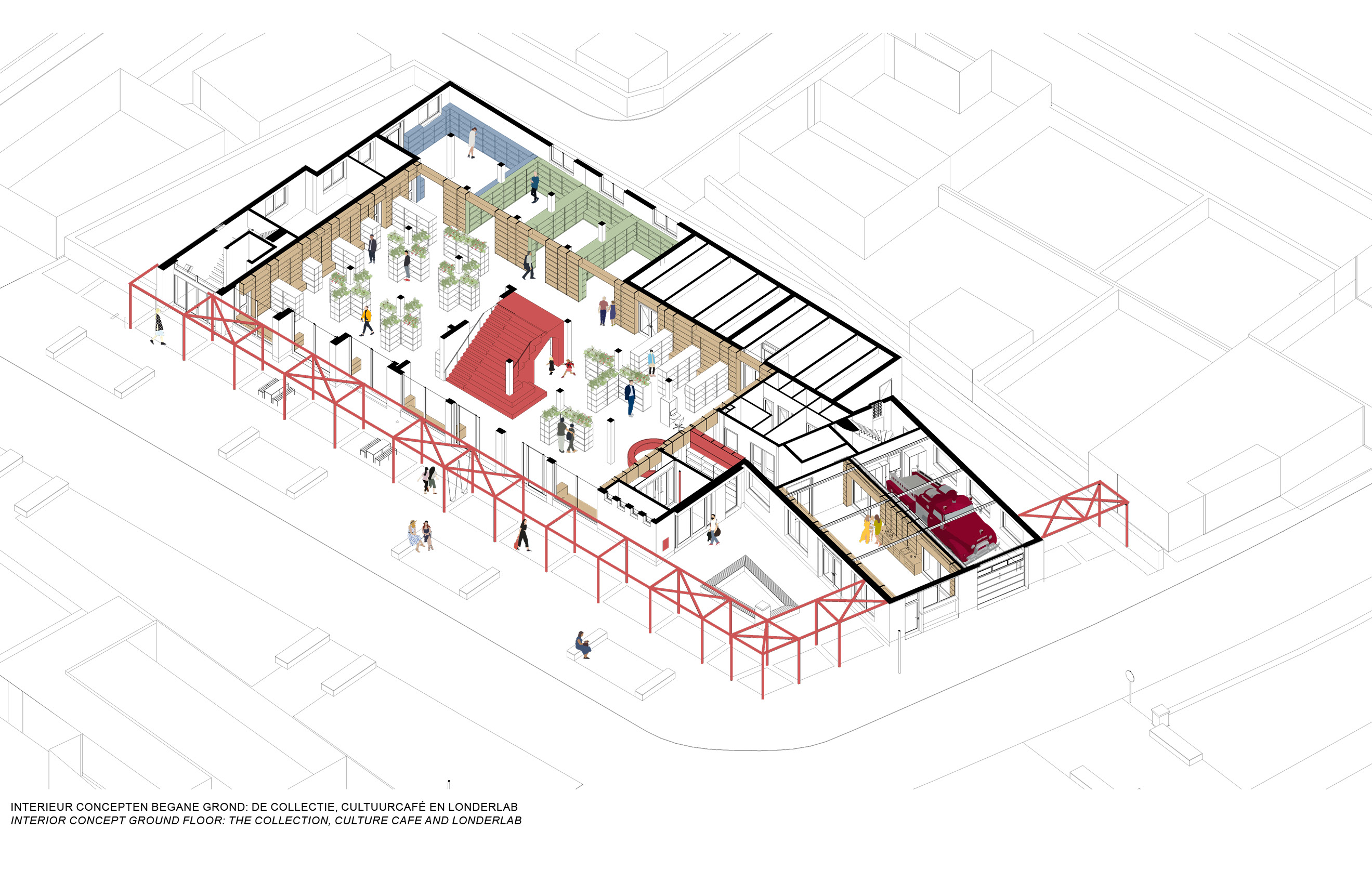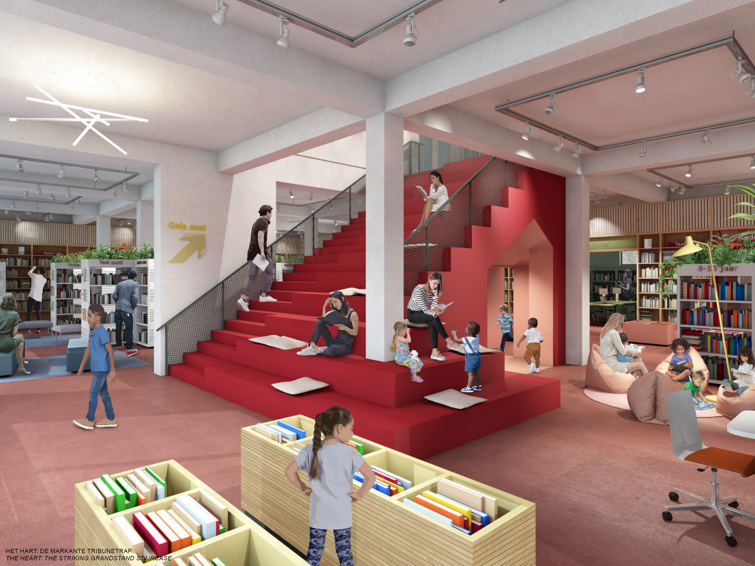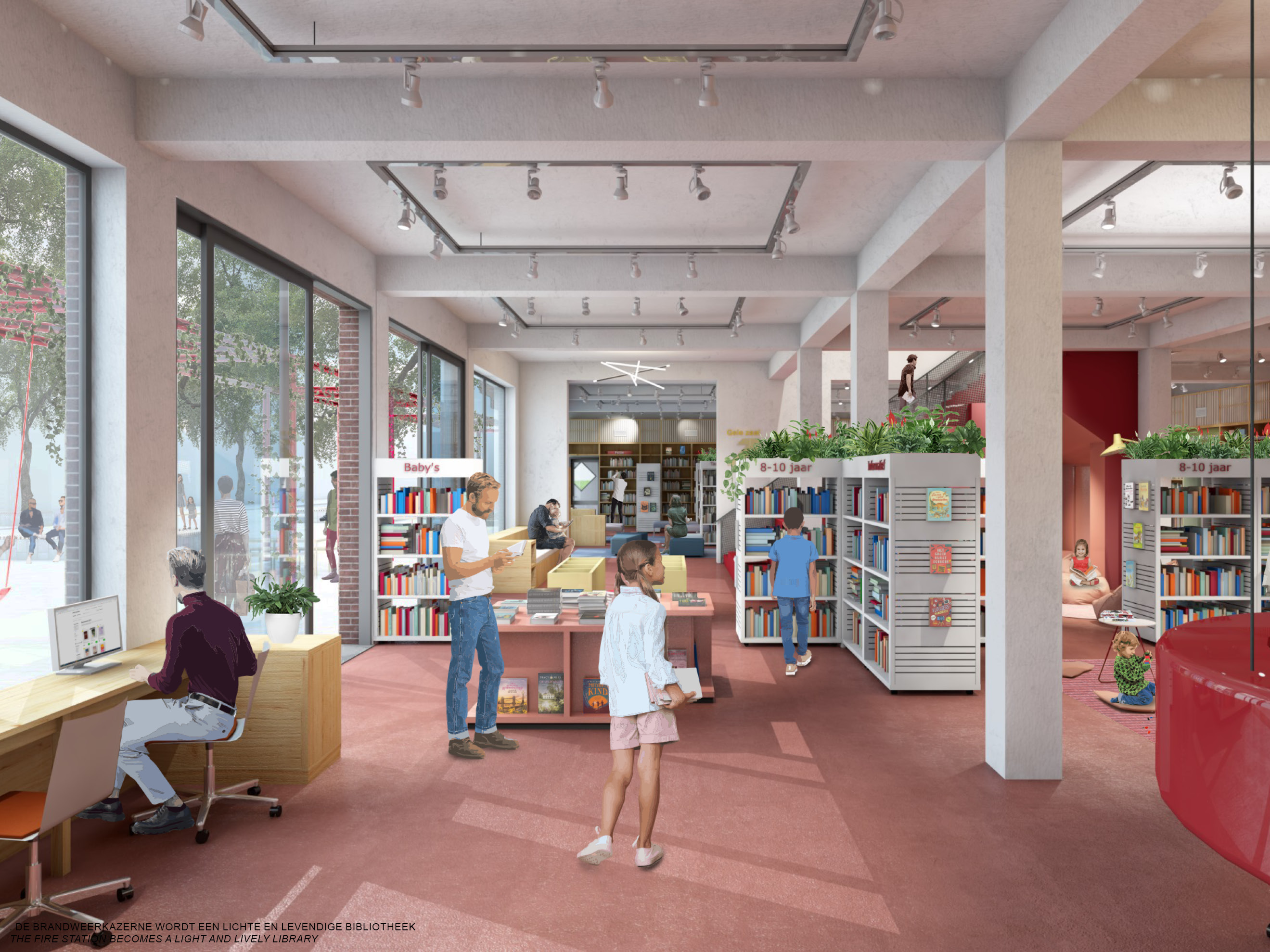 For the transformation, WOONWERK architecten propose a number of simple interventions that have an impact on the functional, public and accessible character required for the new library function. In addition to redesigning and greening the forecourt, the building will be equipped with an inviting entrance and large, open windows that strengthen the relationship between inside and outside. A striking grandstand staircase will be placed centrally in the new interior. This becomes the recognizable heart, a place for meeting. This staircase also provides a direct connection between the library and the public facilities on the first floor. The integration of the library program into the existing fire station is done with maximum respect for the existing building. The rational structure of the existing building is always assumed. Only minor minimal interventions are made to the interior of the building; Furniture is made accurately and appropriately so that the character and image of the existing is retained. The new library will immediately become a beautiful contemporary public place for the residents of Londerzeel.