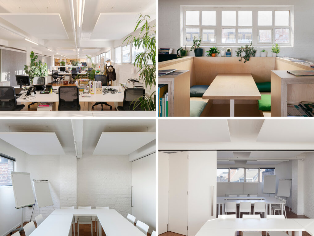 The company, in the center of Antwerp, is located on the second floor of an old warehouse. A pre-existing almost rectangular space, marked with reinforced concrete pillars and hanging beams. It is a big facility that accommodates 35 employees and clients, taking into account the need to create spaces for collaboration, communication, celebration and relaxation.