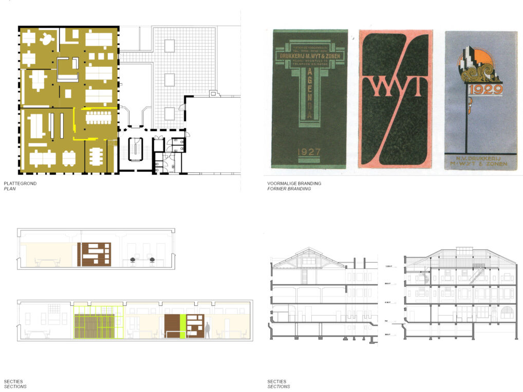 The monumental building of the Rotterdam printer Wyt was designed in 1923 by the architect W. Kromhout. After seventy-five years of loyal service, the building became vacant. In 2003, the Rotterdam Historical Buildings Foundation commissioned the characteristic brick building to be made suitable for an office function with five separate rent-able hull units.
