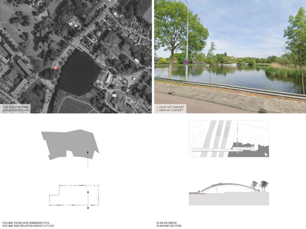 Plaswijckpark is a well-known family recreation park in the middle of a historic nature park. The public attraction is located on a large lake area on the northern edge of Rotterdam. Due to the increasing numbers of visitors, the traffic and parking pressure around the main entrance in the district became too great. Drost + van Veen architects were approached to design the relocation of the entrance to the ring dike, an urban main road.