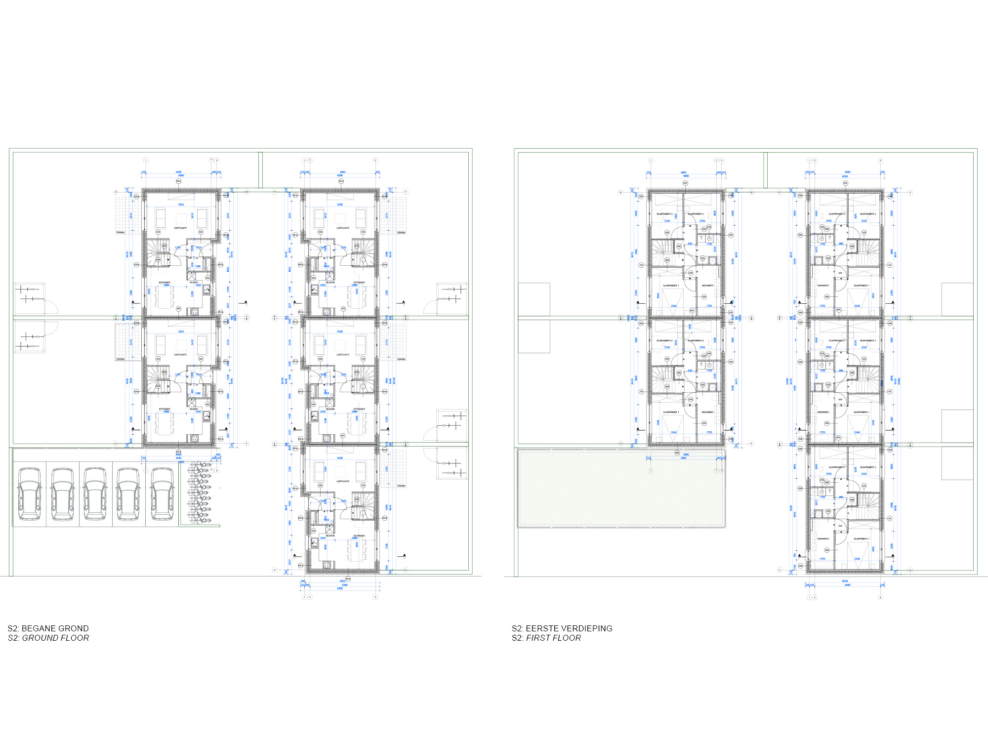 The second zone or S2 is a zone for a compact apartment building. Here 7 apartments are realized. Parking for cars and bikes is solved collectively on the plot. The plot borders mostly side and back facades of new houses and on the west side a school. The context asks for a creative building in order to develop with the necessary respect for the neighbors.