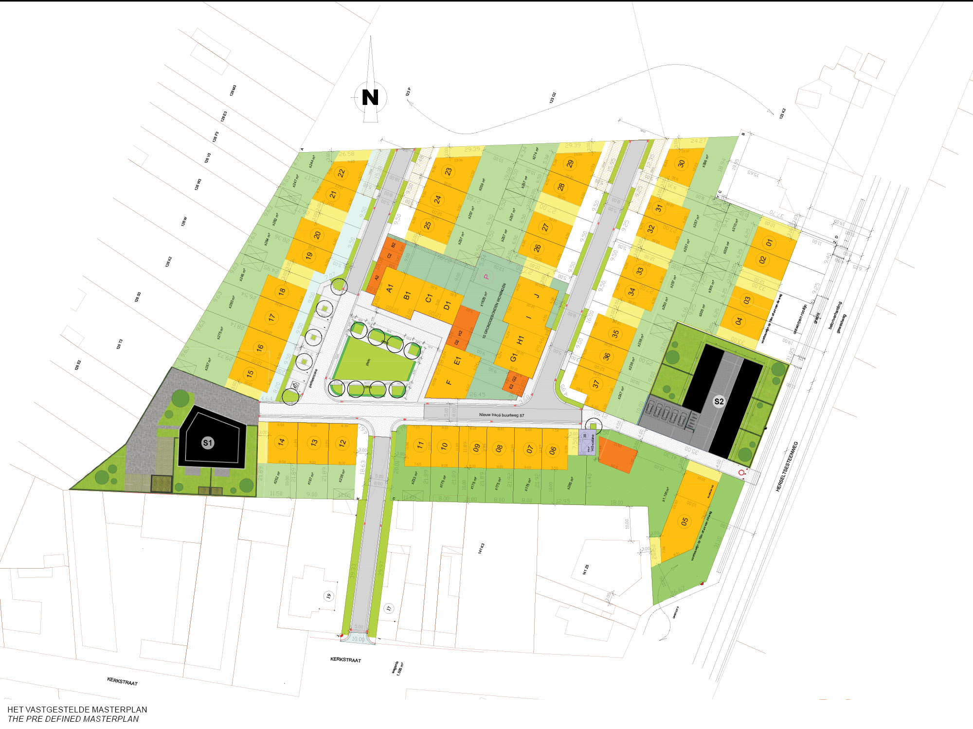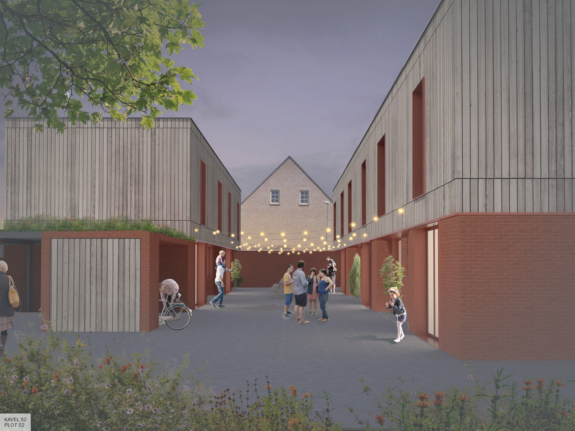 The zones for social housing are slightly different. The first zone or S1 is designed as an alley: five houses around a compact public space. The houses are very undeep and wide and their fronts are oriented at the alley instead of the Herseltsesteenweg behind.