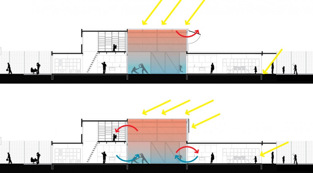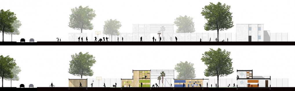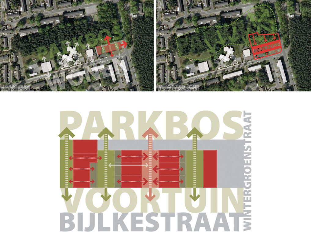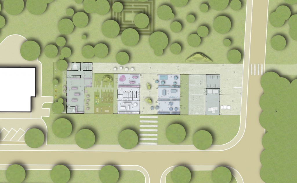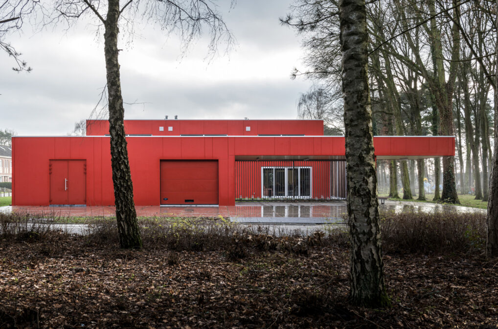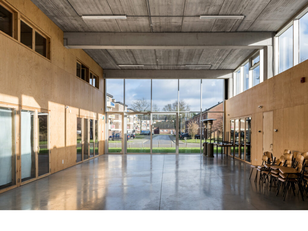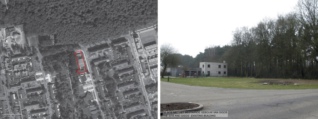 Nieuw-Sledderlo is in redevelopment. The park in the heart of the neighborhood will form the relaxed public space of this area. The new building for Gigos is the link between the street and the park. De corridors between the different rooms are replaced by a transparent central space, which can be inside or outside.