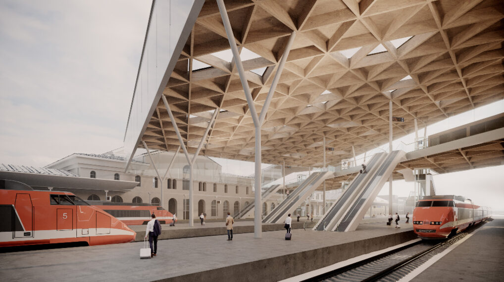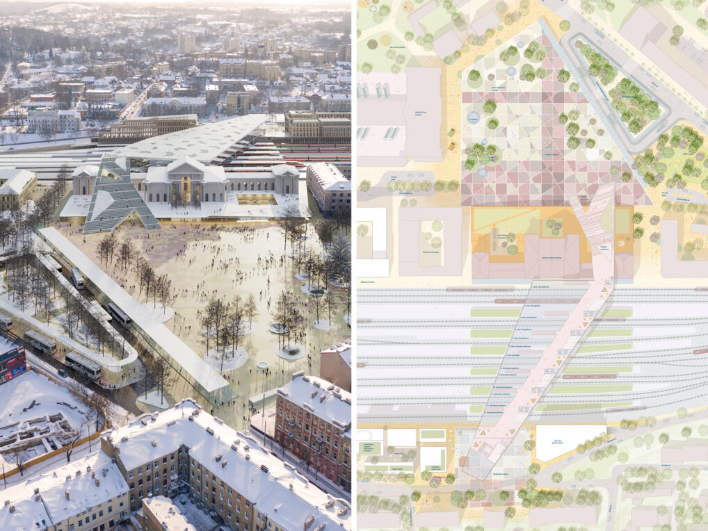The height difference between the two city halves is manifested as a grand staircase overlooking the new square and the city life gathering beneath. On the top a viewing platform overlooks the entire city. The new station entry is situated underneath these steps and continues uninterrupted in the city square, with a second entry on the other side of the bridge.